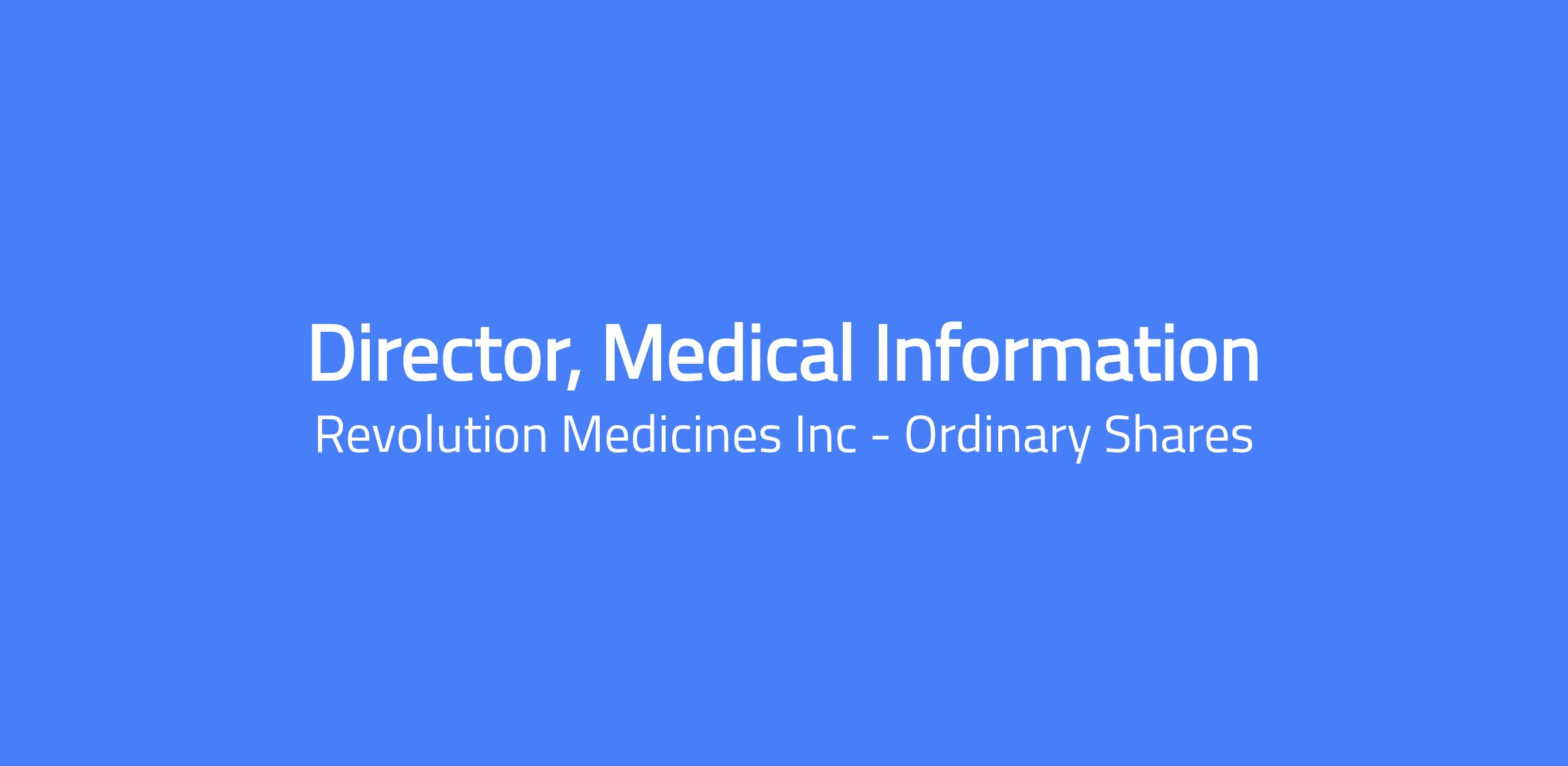 Please note that Revolution Medicines does not extend unsolicited employment offers and will never ask candidates to provide financial information, purchase equipment, or pay fees as part of the hiring process. All legitimate communication from Revolution Medicines will come from an official @revmed.com email address.