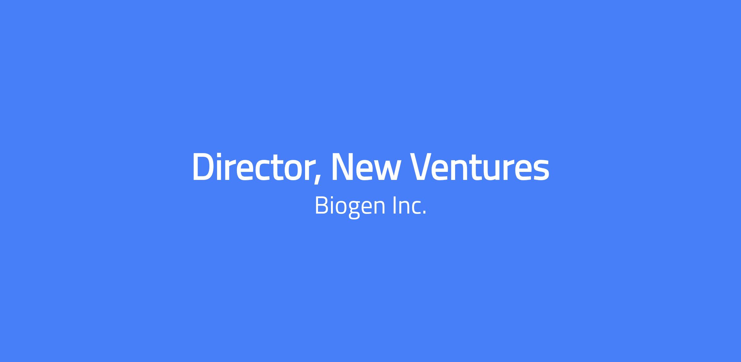 About This Role: As the Director, New Ventures at Biogen, you will play a pivotal role on the Corporate Development team, which is central to Biogenâs corporate strategy. Reporting to the Head of New Ventures, you will spearhead the identification and evaluation of investment opportunities, aiming to build an external portfolio of research and early clinical stage assets. Your leadership will enable Biogen to access breakthrough innovations by managing these assets independently yet aligned with Biogenâs R&D principles. This role is crucial in augmenting Biogenâs pipeline and ensuring long-term growth through strategic partnerships and investments. Your efforts will directly contribute to Biogenâs mission of transforming patientsâ lives through innovative science. What Youâll Do: Proactively survey the scientific, medical, and technological landscape to identify impactful emerging areas of innovation within a defined area of interest. Lead focused cross-functional due diligence teams to evaluate opportunities and drive discussions with internal stakeholders and external KOLs. Triage and prioritize potential investment opportunities, managing a comprehensive deal database. Create written deal summaries and visual presentations to support discussions with senior leadership, highlighting the scientific and strategic importance of proposed opportunities. Support portfolio companies and maintain alignment with Research and early Development organizations to track external programs and assess potential transitions into Biogen's internal pipeline. Develop networks with the venture capital and biotech communities. Who You Are: You thrive in a fast-paced, collaborative environment and are adept at delivering results with excellence. You are experienced in identifying and advancing innovative opportunities, particularly in the biotech and VC sectors. You are a strategic thinker, capable of translating complex scientific data into business opportunities, and you excel in managing high-risk, high-reward prospects. Required Skills: Ph.D. or M.D. in life sciences or a related field, with 5+ years of experience in the biotechnology, venture capital, and/or pharmaceutical industry. Experience in venture capital firms and/or formation and operationalization of seed/series A companies. Comprehensive knowledge of the biotech operating model, portfolio risk management, and drug discovery/early development. Proficiency in multiple transaction types (e.g., equity and option deals). Experience leading multidisciplinary teams, developing complex proposals, and influencing decisions. Ability to operate with a high level of independence and guide others. Job Level: Management Additional Information The base compensation range for this role is: $196,000.00-$270,000.00 Base salary offered is determined through an analytical approach utilizing a combination of factors including, but not limited to, relevant skills & experience, job location, and internal equity. Regular employees are eligible to receive both short term and long-term incentives, including cash bonus and equity incentive opportunities, designed to reward recent achievements and recognize your future potential based on individual, business unit and company performance. In addition to compensation, Biogen offers a full and highly competitive range of benefits designed to support our employeesâ and their families physical, financial, emotional, and social well-being; including, but not limited to: Medical, Dental, Vision, & Life insurances Fitness & Wellness programs including a fitness reimbursement Short- and Long-Term Disability insurance A minimum of 15 days of paid vacation and an additional end-of-year shutdown time off (Dec 26-Dec 31) Up to 12 company paid holidays + 3 paid days off for Personal Significance 80 hours of sick time per calendar year Paid Maternity and Parental Leave benefit 401(k) program participation with company matched contributions Employee stock purchase plan Tuition reimbursement of up to $10,000 per calendar year Employee Resource Groups participation Why Biogen? We are a global team with a commitment to excellence, and a pioneering spirit. As a mid-sized biotechnology company, we provide the stability and resources of a well-established business while fostering an environment where individual contributions make a significant impact. Our team encompasses some of the most talented and passionate achievers who have unparalleled opportunities for learning, growth, and expanding their skills. Above all, we work together to deliver life-changing medicines, with every role playing a vital part in our mission. Caring Deeply. Achieving Excellence. Changing Lives. At Biogen, we are committed to building on our culture of inclusion and belonging that reflects the communities where we operate and the patients we serve. We know that diverse backgrounds, cultures, and perspectives make us a stronger and more innovative company, and we are focused on building teams where every employee feels empowered and inspired. Read on to learn more about our DE&I efforts. All qualified applicants will receive consideration for employment without regard to sex, gender identity or expression, sexual orientation, marital status, race, color, national origin, ancestry, ethnicity, religion, age, veteran status, disability, genetic information or any other basis protected by federal, state or local law. Biogen is an E-Verify Employer in the United States. Weâre united by a shared purpose, proud of our work, and inspired by one another and the lives we strive to change. We are a global team with a commitment to excellence, and a pioneering spirit. As a mid-sized biotechnology company, we provide the stability and resources of a well-established business while fostering an environment where individual contributions make a significant impact. Our team encompasses some of the most talented and passionate achievers who have unparalleled opportunities fo