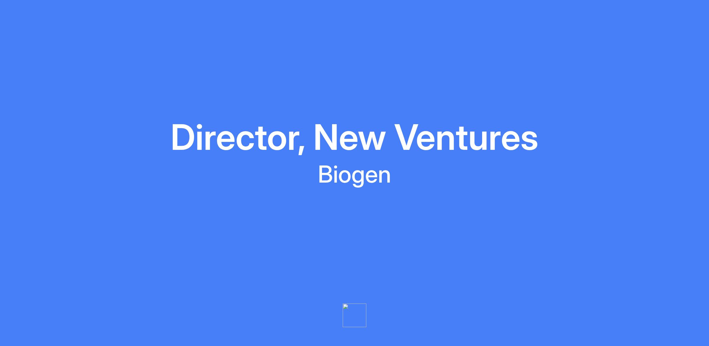 Director, New Ventures at Biogen leading identification and evaluation of external investment opportunities in research and early clinical stage assets to augment Biogenβs pipeline and long-term growth through strategic partnerships and investments.