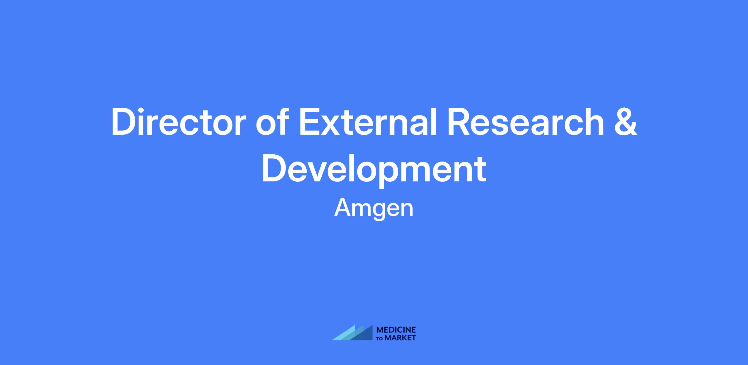 Director of External Research & Development - Technology Business Development. Lead Amgen’s search and evaluation for external partnerships focusing on small molecule drug discovery and technologies supporting oncology, negotiate and execute transactions, and collaborate across functions to align with broader business goals. Contribute to external strategy, build a global network of industry and academic contacts, and oversee cross-functional reviews and negotiations.