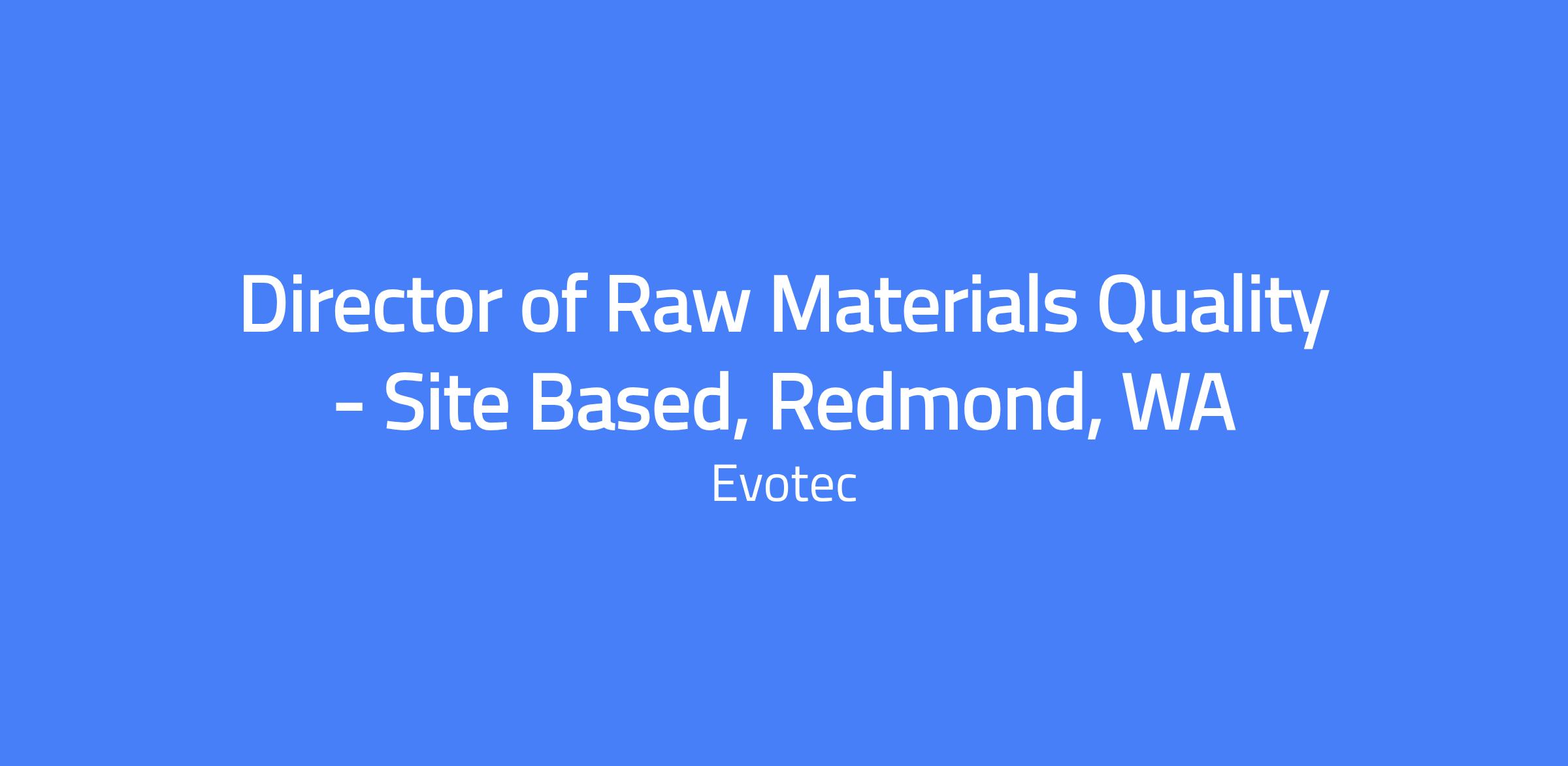 Director of Raw Materials Quality - Site Based, Redmond, WA