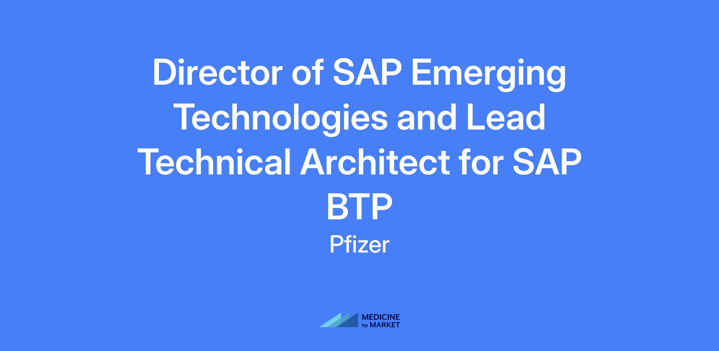 Director of SAP Emerging Technologies and Lead Technical Architect for SAP BTP. Lead the tactical and strategic deployment and lifecycle management of Pfizer’s SAP Business Technology Platform (BTP). Support Pfizer Digital’s mission to deliver secure, scalable, and compliant digital solutions that empower global business operations and accelerate enterprise innovation.