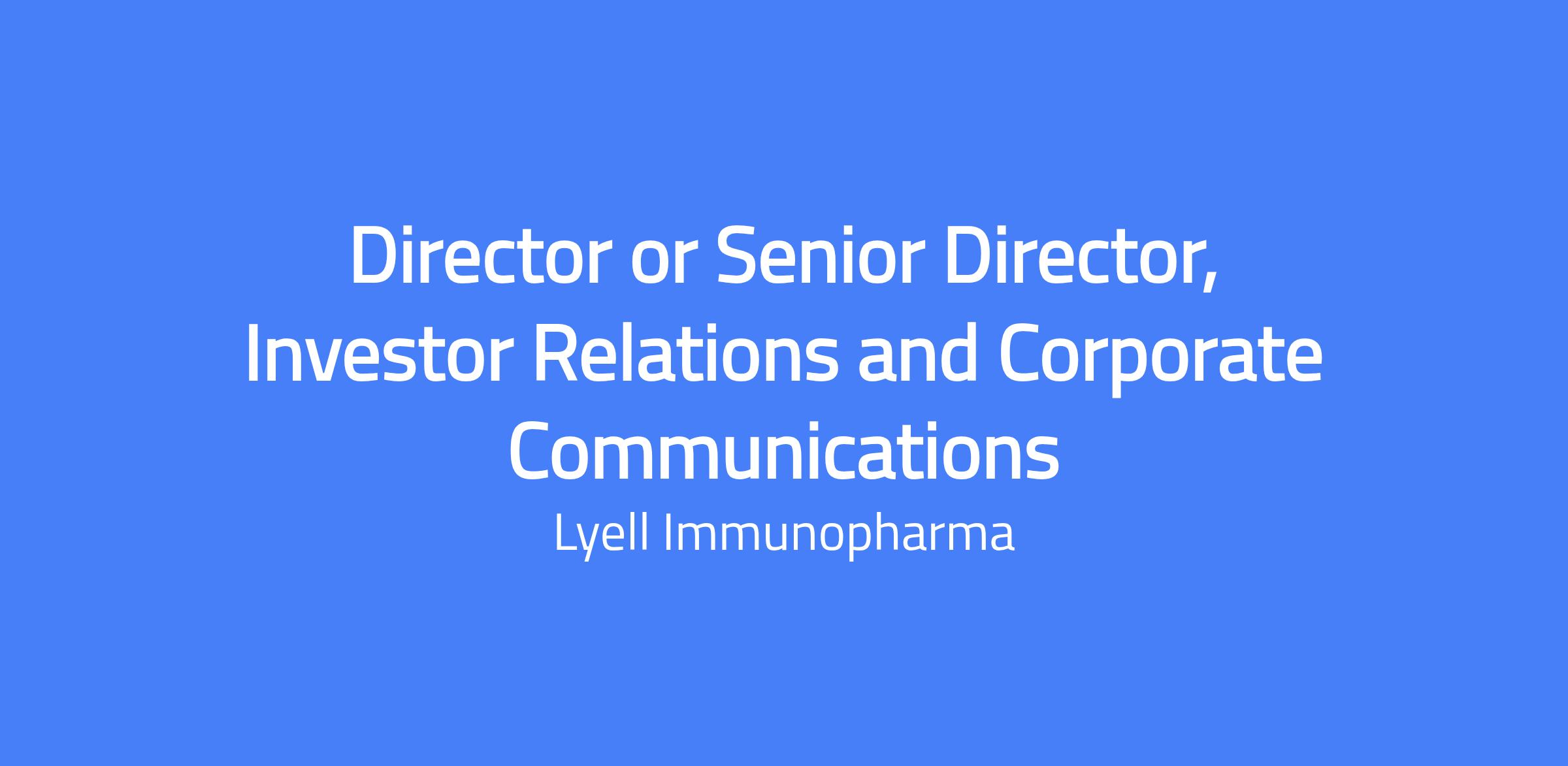 Director or Senior Director, Investor Relations and Corporate Communications develops and executes an integrated investor communications strategy to clearly convey Lyell's scientific and clinical progress to investors, analysts, media, and the financial community. The role translates complex technical data into investment-driving narratives, collaborates with executives and product teams on external communications, and oversees press materials, the corporate website, quarterly earnings filings, investor events, and milestone communications while ensuring regulatory compliance.