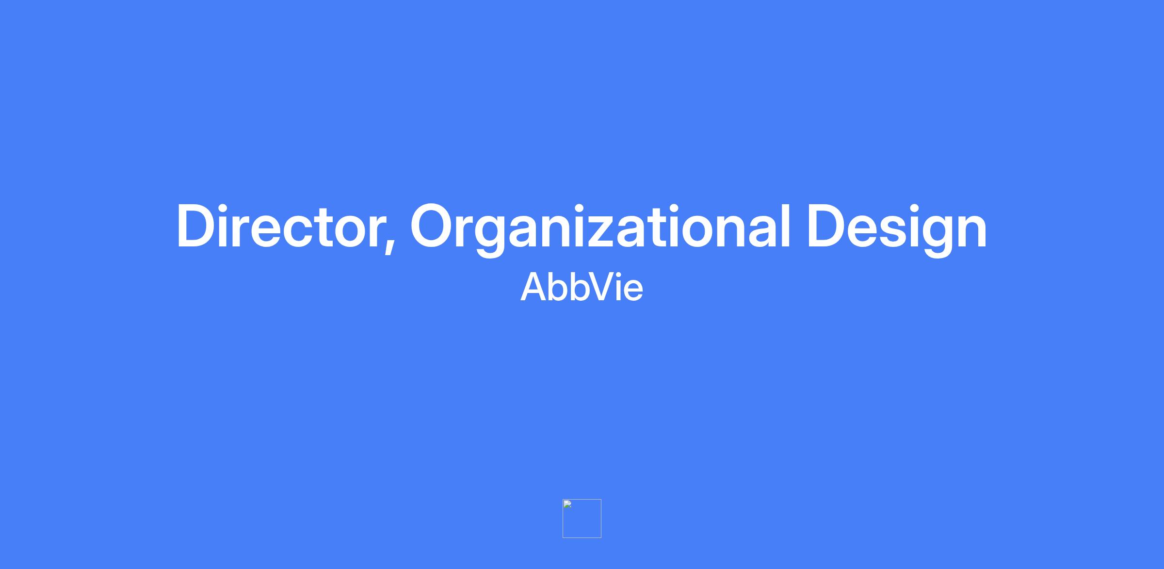 Director, Organizational Design. Partner with leaders and teams to drive organizational design efforts throughout AbbVie, increasing performance in a rapidly evolving business. Influence stakeholders, develop OE capability in others, and design and deliver solutions in organization design, strategy, team effectiveness, culture, and change leadership to boost organizational effectiveness.