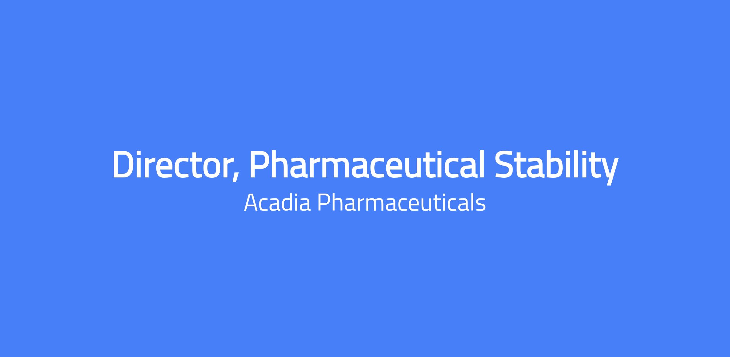 - Continue to develop and revise Acadia policies related to performing stability testing throughout the drug development stages.