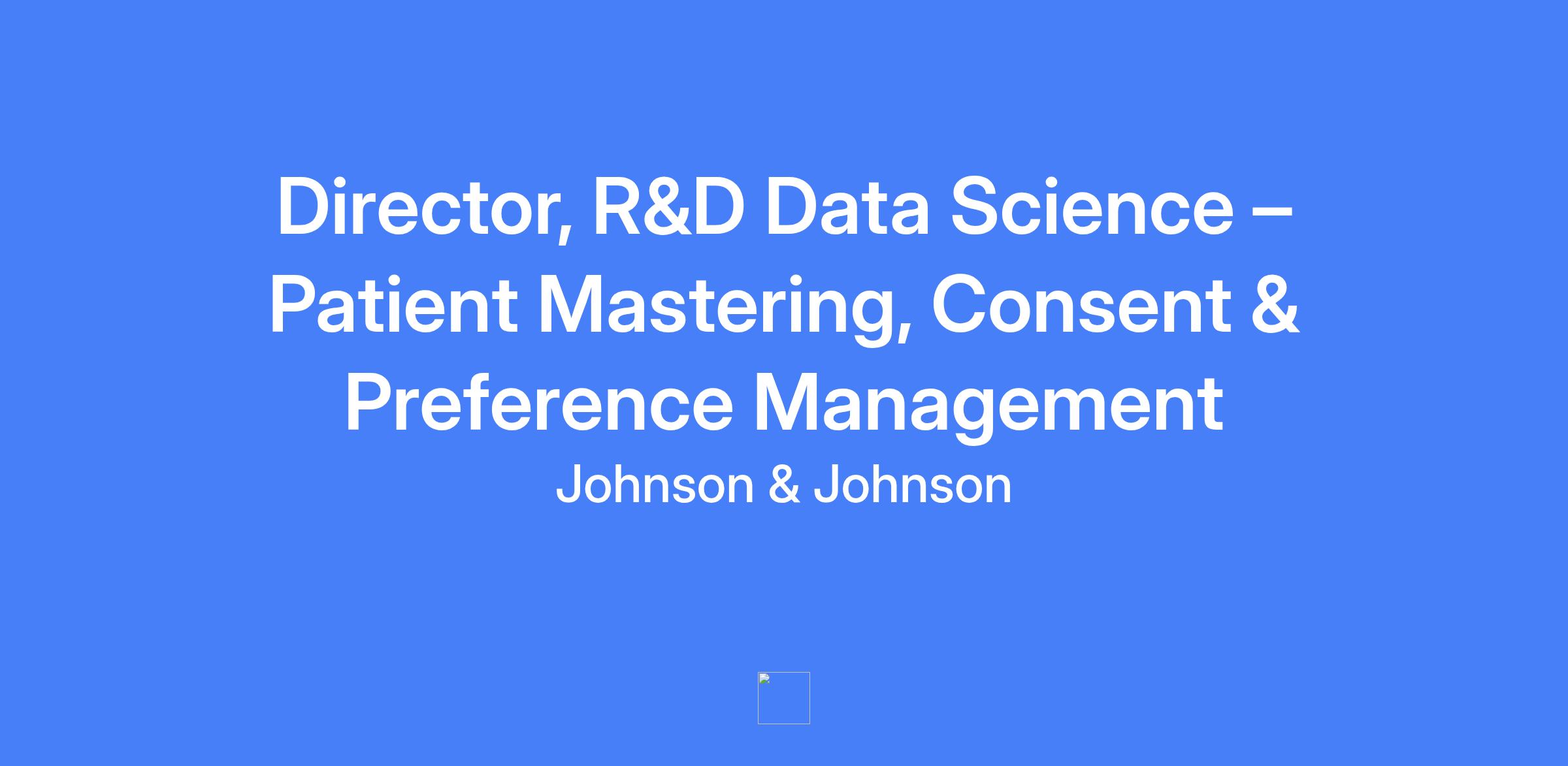 Director, R&D Data Science โ Patient Mastering, Consent & Preference Management. Leads strategy, governance, and operationalization of patient-centric master data across R&D, ensuring patient, consent, and preference data are accurate, complete, traceable, and accessible to enable trusted data use in clinical development, real-world evidence generation, and regulatory submissions. Reports to the R&D Data Science & Digital Health โ Data Strategy & Products team and develops best-in-class approaches for patient mastering and consent management.
