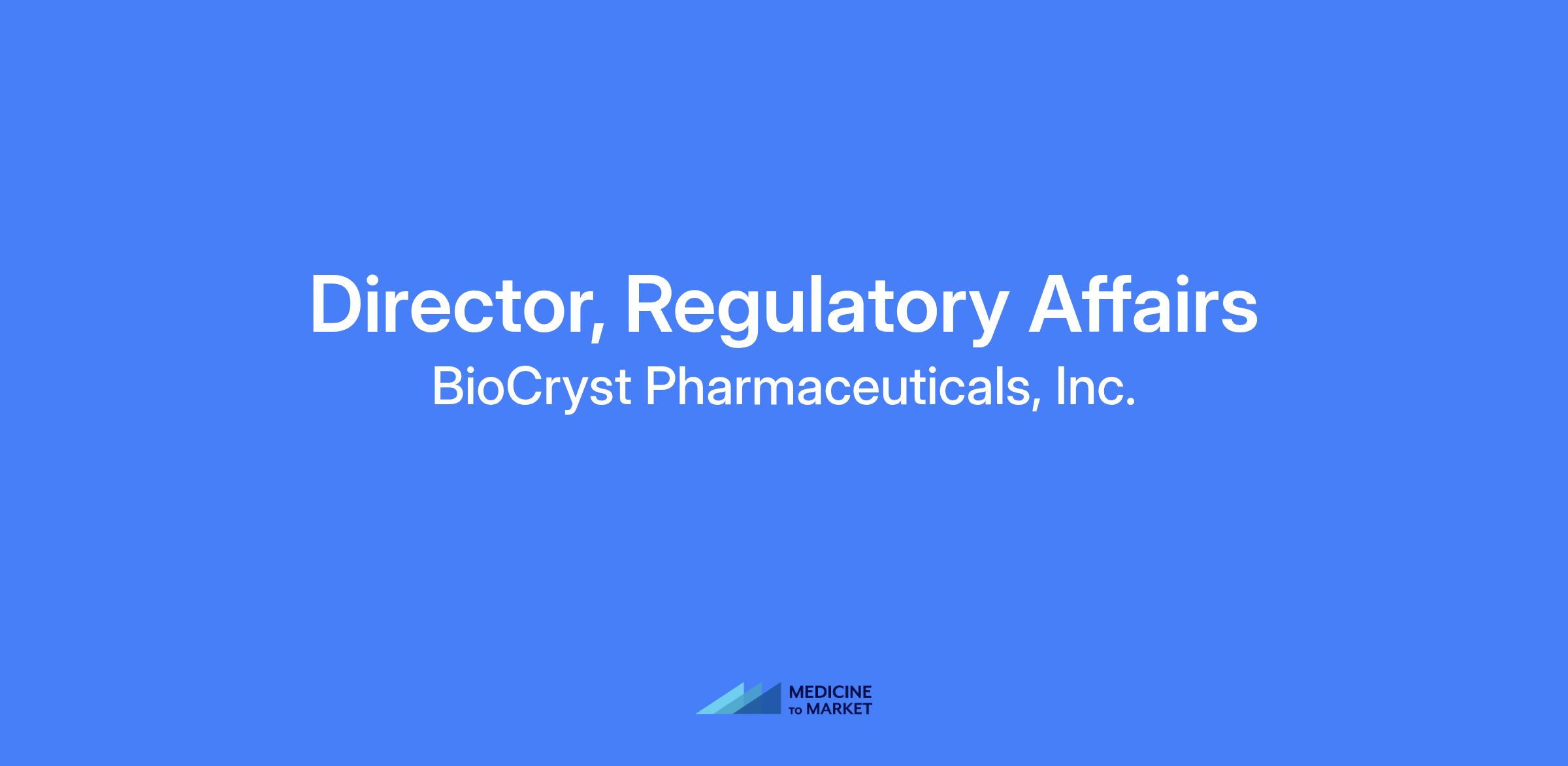 The Director of Regulatory Affairs at BioCryst Pharmaceuticals will work closely with product development core teams and sub teams in setting company goals and working with these groups to meet those goals. This position is responsible for ensuring efficient and productive regulatory submissions and will assist in strategic drug development program implementation, developing and implementing initiatives focused on coordinating the company’s regulatory program and product development missions.