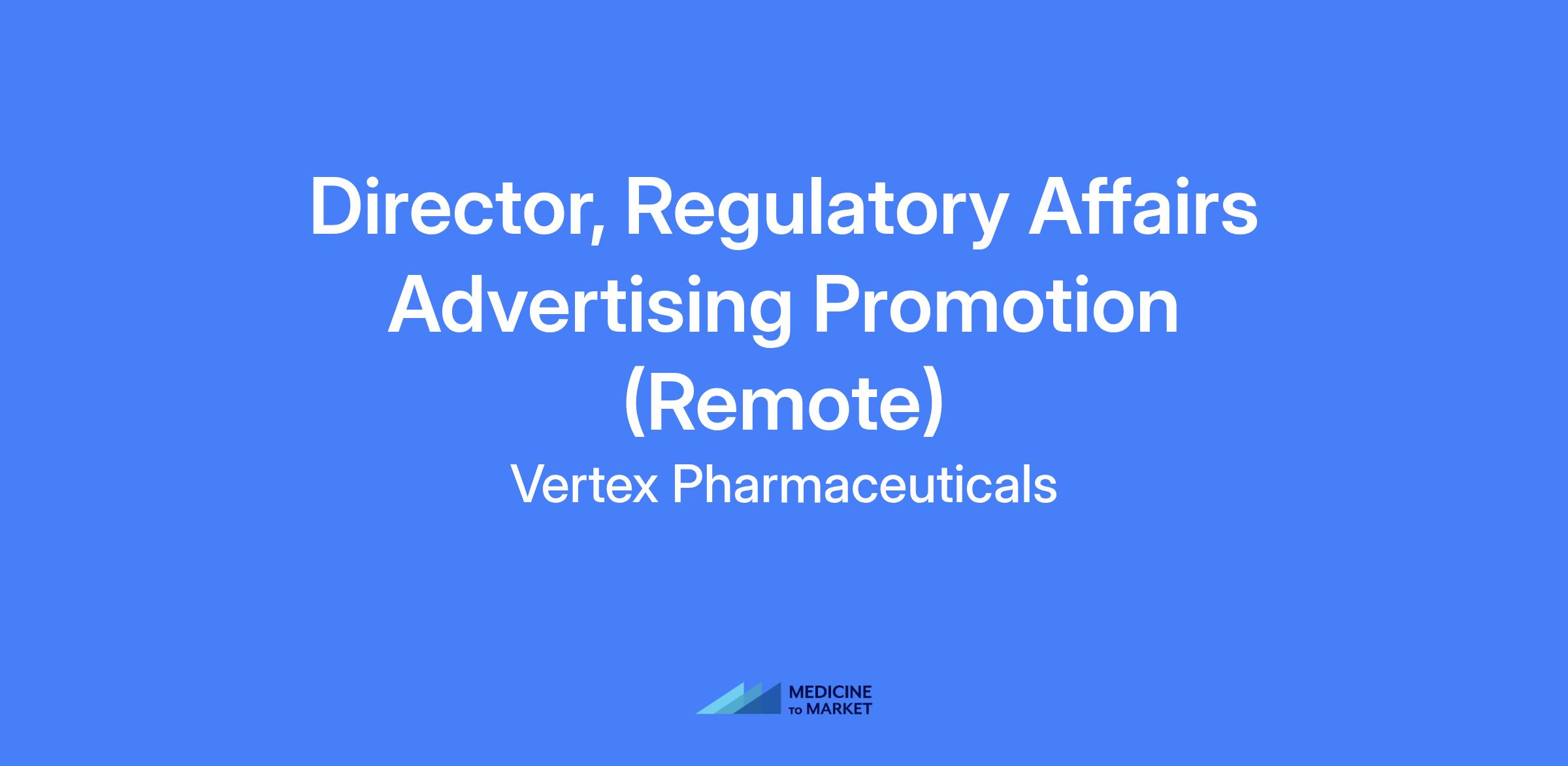 Director, Regulatory Affairs Advertising & Promotion (Remote) - Vertex is seeking an experienced Regulatory Affairs Advertising & Promotion Director to provide strategic regulatory direction for the review and approval of product, pipeline, and disease state communications for its pain assets in the US. The role ensures all promotional and nonpromotional communications meet regulatory requirements and support business objectives, collaborating cross-functionally to develop viable communications and implement processes that drive compliance and business success.