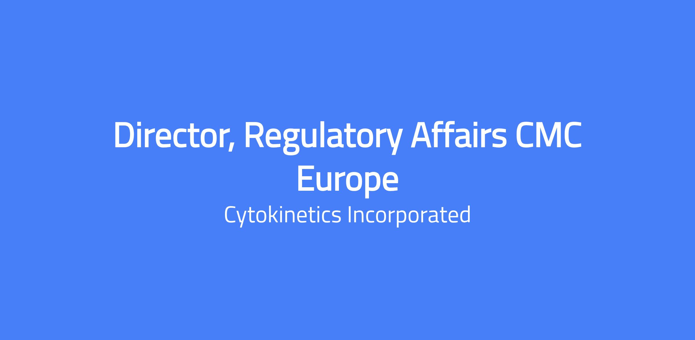 - 10 - 12+ years of related work experience (Director candidates will typically bring 12+ years; Associate level candidates may be considered with 10+ years and strong potential), including 8+ years in Regulatory Affairs CMC in the Biotech/Pharmaceutical industry; experience in small molecule drug development required; experience in the cardiovascular therapeutic area is a plus