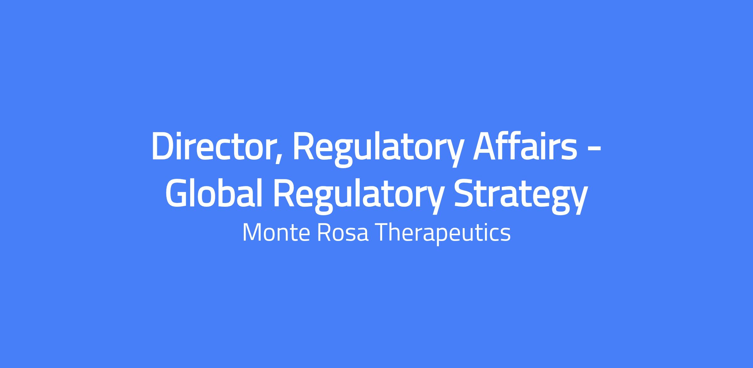 Monte Rosa Therapeutics is seeking an experienced and strategic Director of Regulatory Affairs to lead and support global regulatory efforts across our development programs, with a focus on immunology. The ideal candidate will be responsible for developing and executing regulatory strategies that support global product development and registration. This role requires strong regulatory knowledge, leadership skills, and the ability to work effectively in a cross-functional environment. Global regulatory experience is required, and immunology background is preferred. CMC experience is a plus.