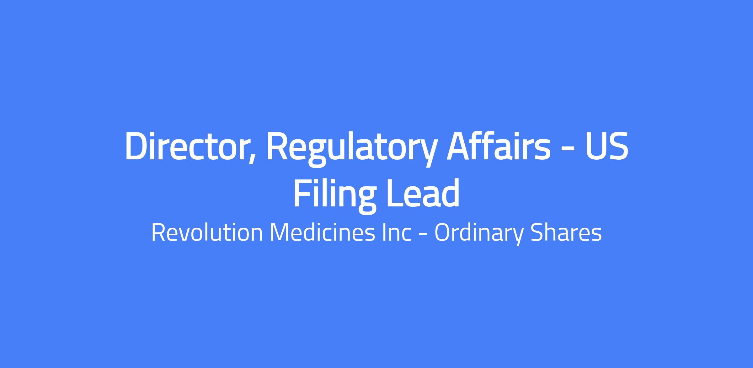 The Director of Regulatory Affairs (US Filing Lead) is accountable for driving preparation & execution of Regulatory NDA/MAA filings for late-stage oncology programs at RevMed. They will manage end-to-end execution of the dossier, ensuring cross-functional coordination and effective communication across Regulatory, Clinical, Biostatistics, CMC, Quality, Translational Medicine and Commercial. The Director will support drug development teams and ensure delivery of targeted, pragmatic, well-vetted, consistent and actionable regulatory advice. The Director must have a thorough understanding and be highly experienced in oncology drug development, US NDA regulations, current Health Authority thinking, and have strong leadership & problem-solving ability.Â