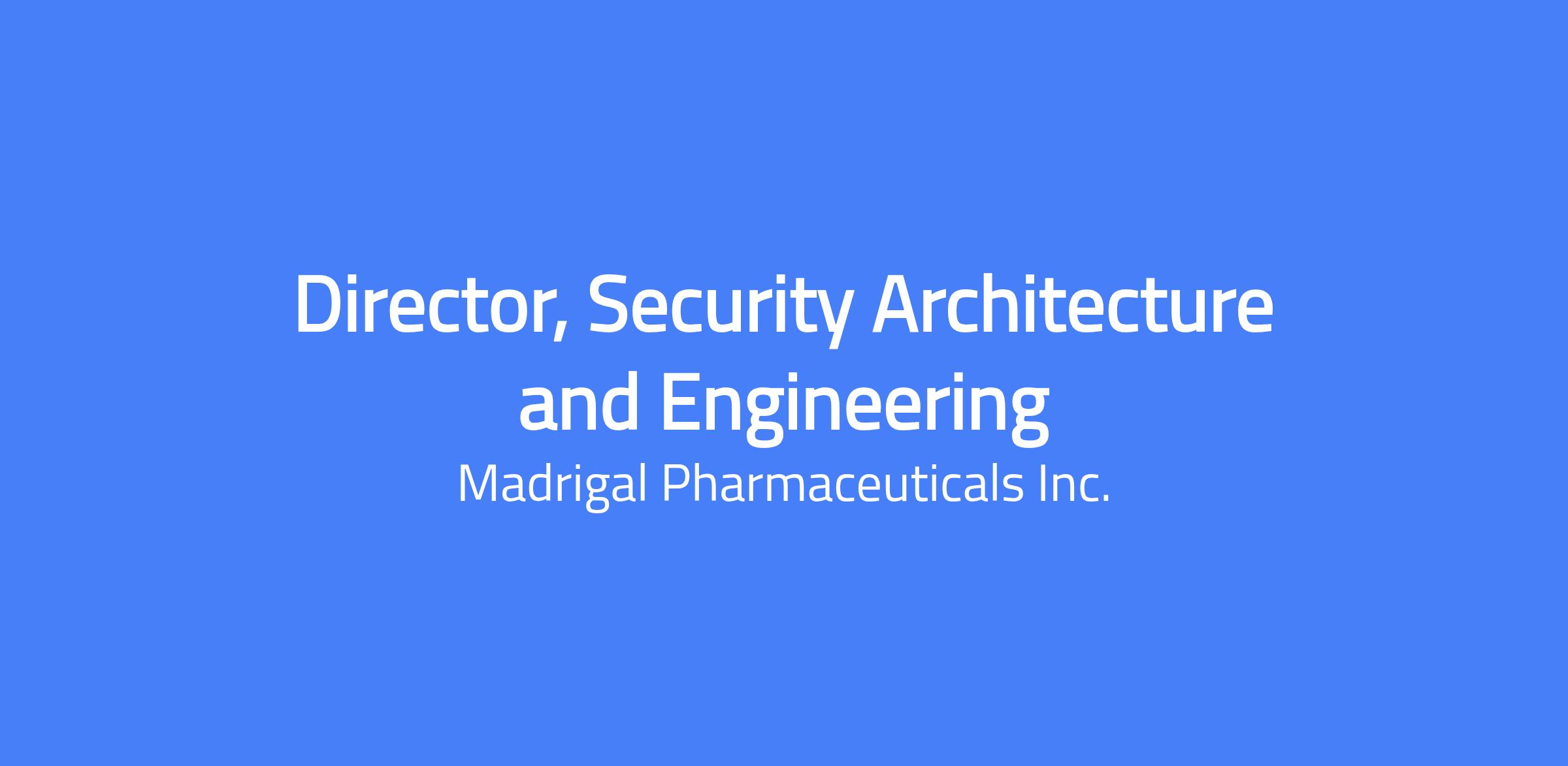 Madrigal is a biopharmaceutical company focused on delivering novel therapeutics for metabolic dysfunction-associated steatohepatitis (MASH), a serious liver disease that can progress to cirrhosis, liver failure, need for liver transplantation and premature mortality. Every member of our Madrigal team is connected by our shared purpose: leading the fight against MASH. Madrigal’s medication, Rezdiffra (resmetirom), is a once-daily, oral, liver-directed THR-β agonist designed to target key underlying causes of MASH. Rezdiffra is the first and only medication approved by both the FDA and European Commission for the treatment of MASH with moderate to advanced fibrosis (F2 to F3). An ongoing Phase 3 outcomes trial is evaluating Rezdiffra for the treatment of compensated MASH cirrhosis (F4c). Our success is driven by our people. We are building a dynamic, inclusive, and high-performing culture that values scientific excellence, operational rigor, and collaboration. To support our continued growth, we are strengthening our workforce strategy to ensure we have the right talent, at the right time, in the right way. We are seeking a Director of Security Architecture & Engineering to lead secure cloud design (Azure primary, AWS secondary) and advance the maturity of our security engineering capabilities, including SIEM and enterprise telemetry. This is a player–coach leadership role within a lean security organization. The Director will shape secure-by-design cloud architecture while leading and evolving security engineering foundations that enable effective detection and response across the environment. The ideal candidate combines deep cloud security architecture expertise with strong hands-on security engineering experience and operational credibility. Key Responsibilities Cloud Security Architecture Defines and evolves secure cloud architecture for Azure (primary) and AWS (secondary), establishing scalable security guardrails across identity, networking, encryption, and workload protection. Establishes and enforces cloud security standards across Infrastructure as Code (IaC), CI/CD pipelines, and Secure SDLC practices, embedding secure-by-design principles into engineering workflows and deployment frameworks. Leads cloud architecture reviews and threat modeling initiatives, partnering with engineering teams to ensure scalable, resilient, auditable, and compliant cloud deployments. Security Engineering & Telemetry Owns the strategy and maturity roadmap for SIEM and enterprise telemetry, advancing detection coverage, signal quality, and measurable risk reduction. Provides oversight of enterprise security tooling, including endpoint protection and cloud-native security platforms, ensuring cohesive integration and operational effectiveness. Establishes cross-domain logging and telemetry standards across cloud, identity, endpoint, and enterprise systems, ensuring architectural decisions translate into effective monitoring and reduced analyst noise. Identity Integration Ensures cloud security architecture aligns with enterprise IAM standards and governance. Architects integration of privileged access, role-based access, and conditional access models within cloud environments. Integrates identity telemetry into centralized monitoring workflows. Operational Engagement Actively engages in security engineering and operational efforts as needed within a lean team. Serves as technical escalation support during significant security events. Continuously strengthens the connection between architecture, engineering, and operational security outcomes. Risk & Leadership Impact Translates architectural and engineering decisions into measurable risk reduction. Provides executive-level updates on cloud posture, security engineering maturity, and cyber risk trends. Other duties as assigned Required & Desired Qualifications 12+ years in cybersecurity with significant cloud security architecture experience. Deep expertise in Azure security; working knowledge of AWS. Experience designing and operating security controls embedded in CI/CD and Infrastructure as Code workflows. Strong hands-on background in security engineering and enterprise SIEM/detection platforms (Microsoft Sentinel preferred). Experience integrating IAM controls into cloud security architecture. Comfortable operating in a lean environment requiring both strategic leadership and tactical engagement. Proven ability to translate technical risk into business impact. Madrigal’s Total Rewards strategy is based on a biotech industry peer group comparator and is inclusive of base pay, bonus and equity. Our equity offers meaningful opportunity allowing our employees to share in the success they help create. By aligning individual and company performance, we empower employees to think like owners, giving them a stake in the organization. All employees receive equity, which we believe reinforces our ownership culture. Base salary is determined by several factors including the candidate’s qualifications, skills, education, experience, business needs and market demands. As of the date of this posting, a good faith estimate of the current pay scale for this position, applicable to all candidates, is $204,000 - $249,000 per year. We comply with all applicable minimum wage laws. All full-time employees receive equity, which reinforces our ownership culture and offers meaningful opportunity for our employees to share in the success they help create. By aligning individual and company performance, we empower employees to think like owners, giving them a stake in the organization. Full-time employees are also eligible for comprehensive benefits, including flexible paid time off, medical, dental, vision and life/disability insurance, and 401(k) offerings (i.e., traditional, Roth, and employer match) in accordance with applicable plans. We also offer additional voluntary benefits like supplemental life insurance, legal services, and other offerings. In addition, 