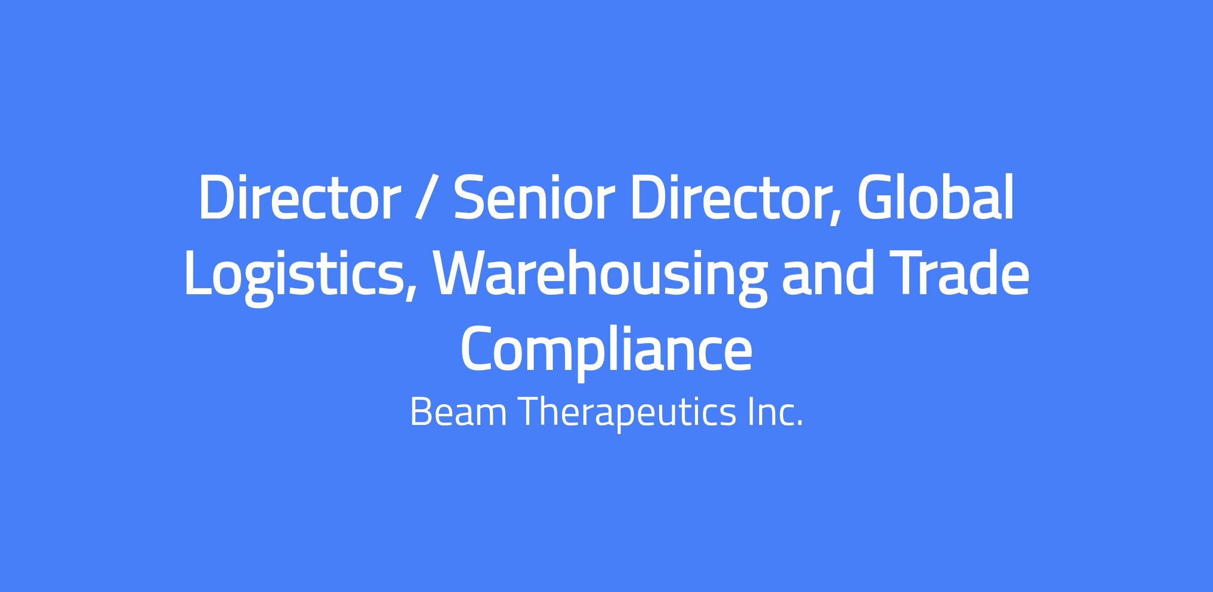 The Senior Director, Global Logistics, Warehousing and Trade Compliance is responsible for defining and executing the global strategy, operational leadership, and compliant storage and movement of materials supporting R&D, Clinical, and Commercial programs across Beam. This role provides end‑to‑end leadership across global logistics operations, warehousing networks, and trade compliance, ensuring reliable supply, regulatory adherence, and scalable infrastructure to support pipeline growth and commercialization.