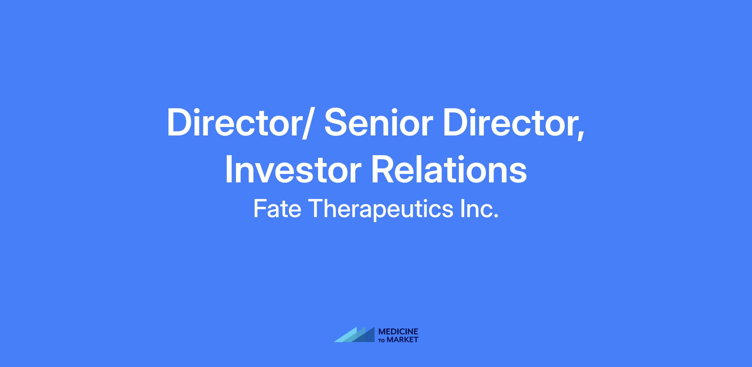 Fate Therapeutics is seeking an experienced investor relations professional to support the development and implementation of the Companyโs Investor Relations objectives. Responsibilities include drafting presentations, press releases, earnings scripts, and managing content on the Companyโs website. The Senior Director / Director, Investor Relations will also assist in scheduling meetings with investors, analysts, and bankers. This full-time position, reporting to the Chief Financial Officer and is located at our corporate headquarters in San Diego, CA.