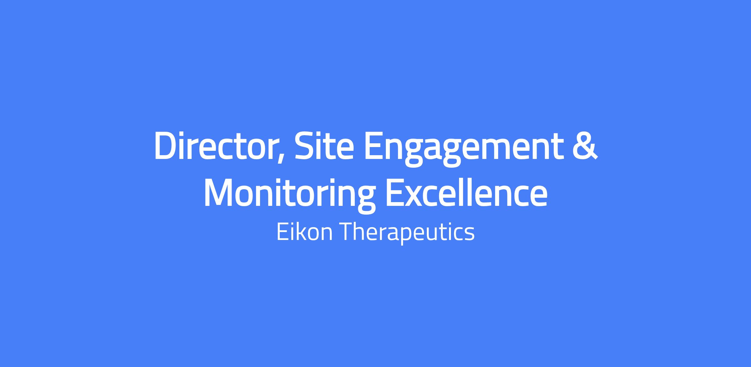 The Director Study Site Engagement & Monitoring Excellence will be responsible for leading the development and execution of Eikon’s global trial site engagement strategy, including oversight and accountability for all internal/external managed site monitoring activities to ensure predictable delivery of high-quality data and establish Eikon as a preferred sponsor for clinical sites.