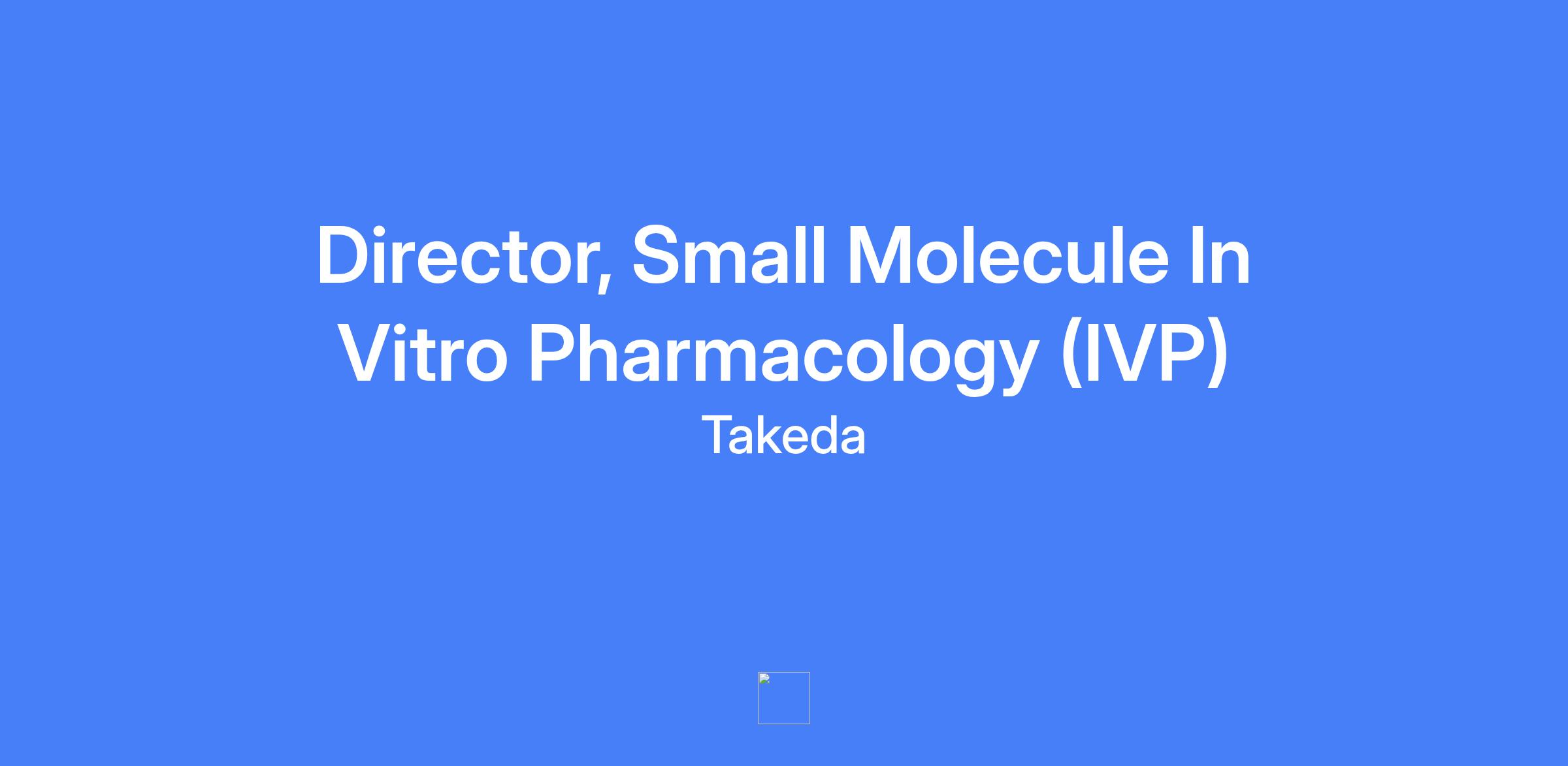 Director, Small Molecule In Vitro Pharmacology (IVP) drives in vitro pharmacology research for small molecule drug discovery, identifying bona fide hit molecules and providing deep insights into in vitro profiles in collaboration with medicinal chemists. The role oversees external CRO programs, designing and managing assays, and accelerating DMTA cycles conducted at CROs to impact Takedaβs pipeline.