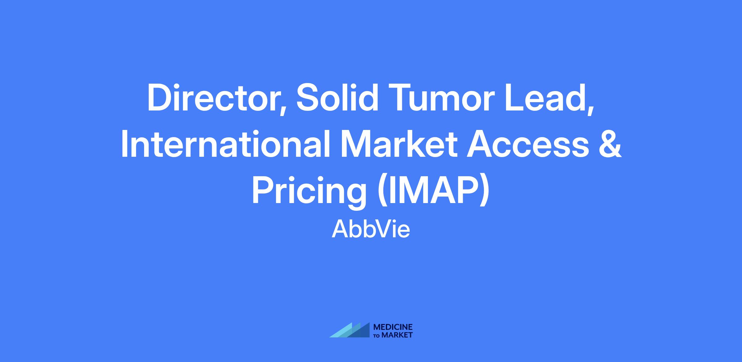 The Solid Tumor Lead in International Market Access & Pricing (IMAP) is responsible for developing and implementing integrated market access and pricing strategies for all solid tumor assets within the oncology pipeline. This leadership role leverages deep clinical and payer expertise, competitive insights, and cross-functional collaboration to maximize access, reimbursement, and commercial success for AbbVie’s pipeline oncology indications. The role reports to the Lead of Oncology Pipeline and supports shaping the future of oncology therapeutics.