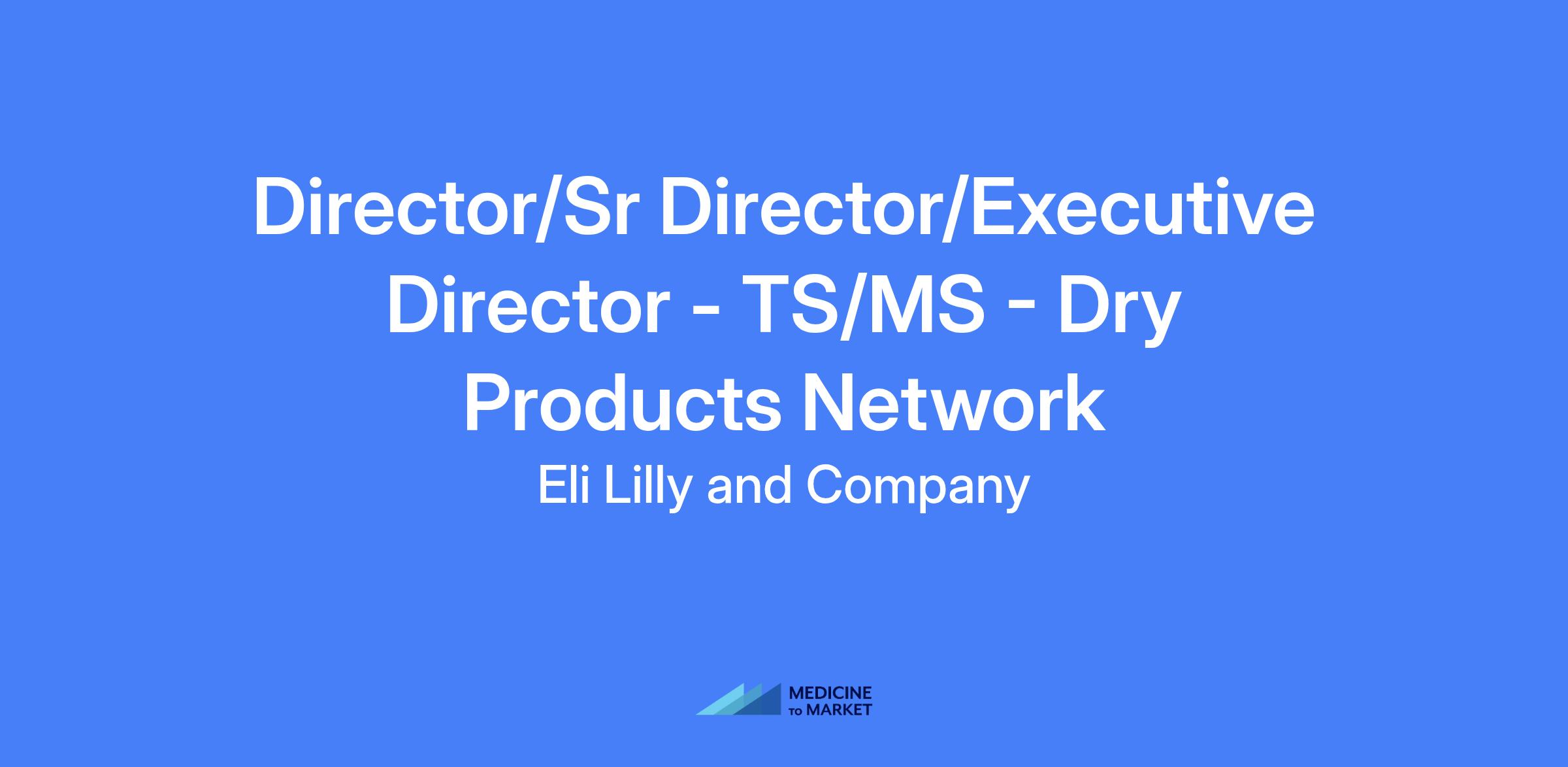 Director/Sr Director/Executive Director - TS/MS - Dry Products Network. Provides technical leadership for drug product manufacturing processes under development and in commercial production in the Dry Product Network.