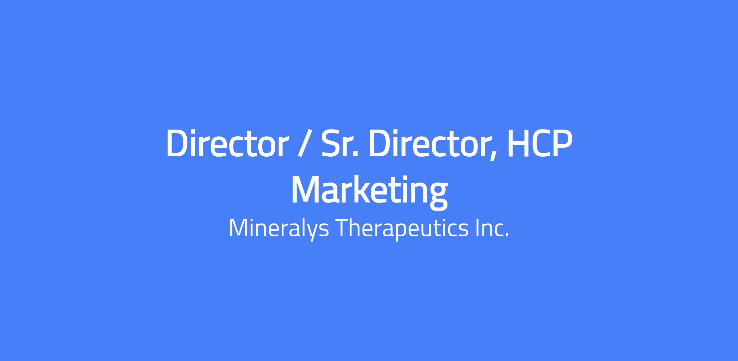 This role requires both strategic and hands-on executional leadership. The ideal candidate will be a self-starter with deep experience in HCP marketing, including launch planning, messaging, creative campaign development, tactical planning, and cross-functional leadership. Mineralys is looking for individuals who thrive in an entrepreneurial setting and are motivated to shape a brand from day one.