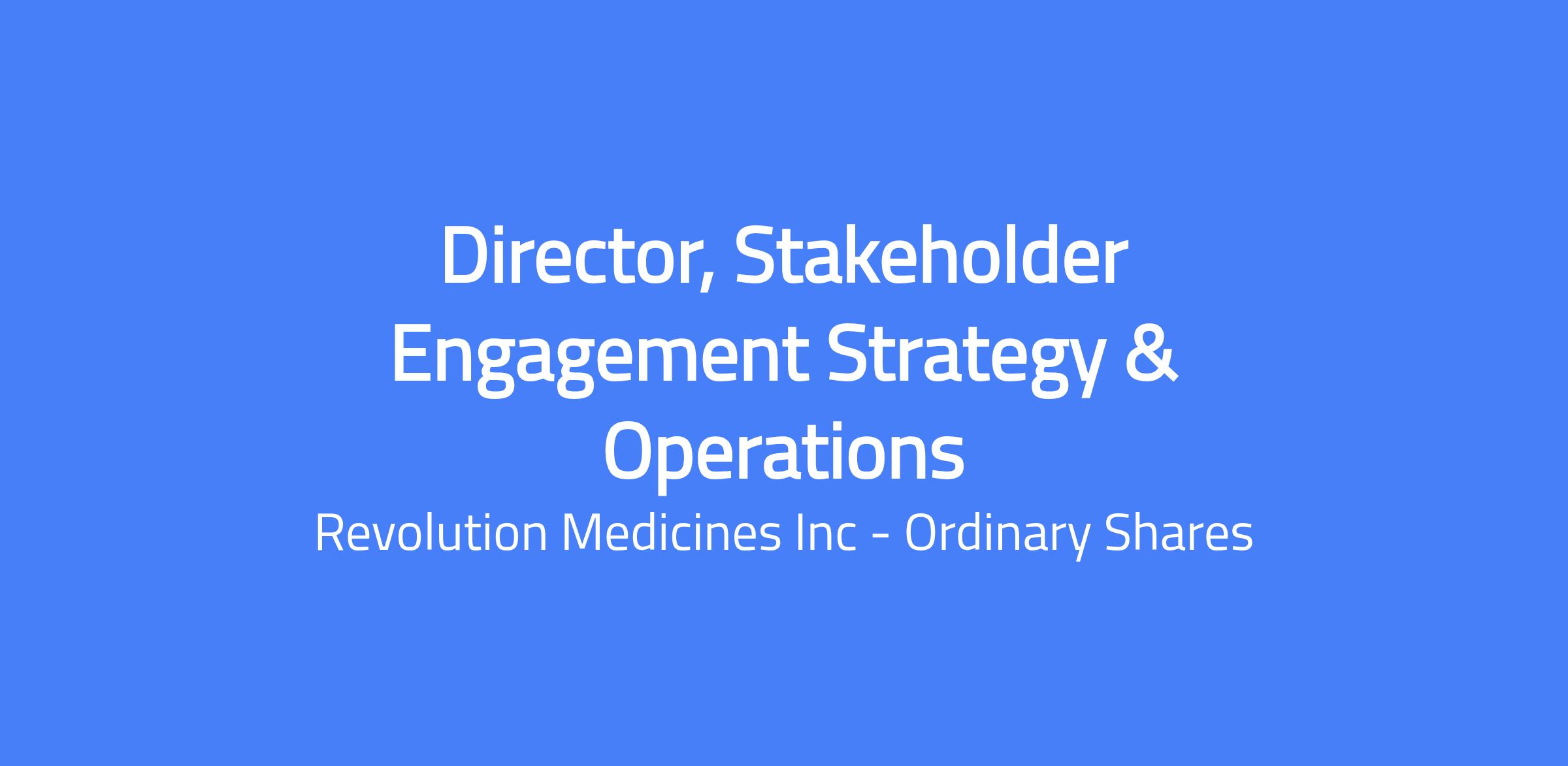 Revolution Medicines is an equal opportunity employer and prohibits unlawful discrimination based on race, color, religion, gender, sexual orientation, gender identity/expression, national origin/ancestry, age, disability, marital status, medical condition, and veteran status.