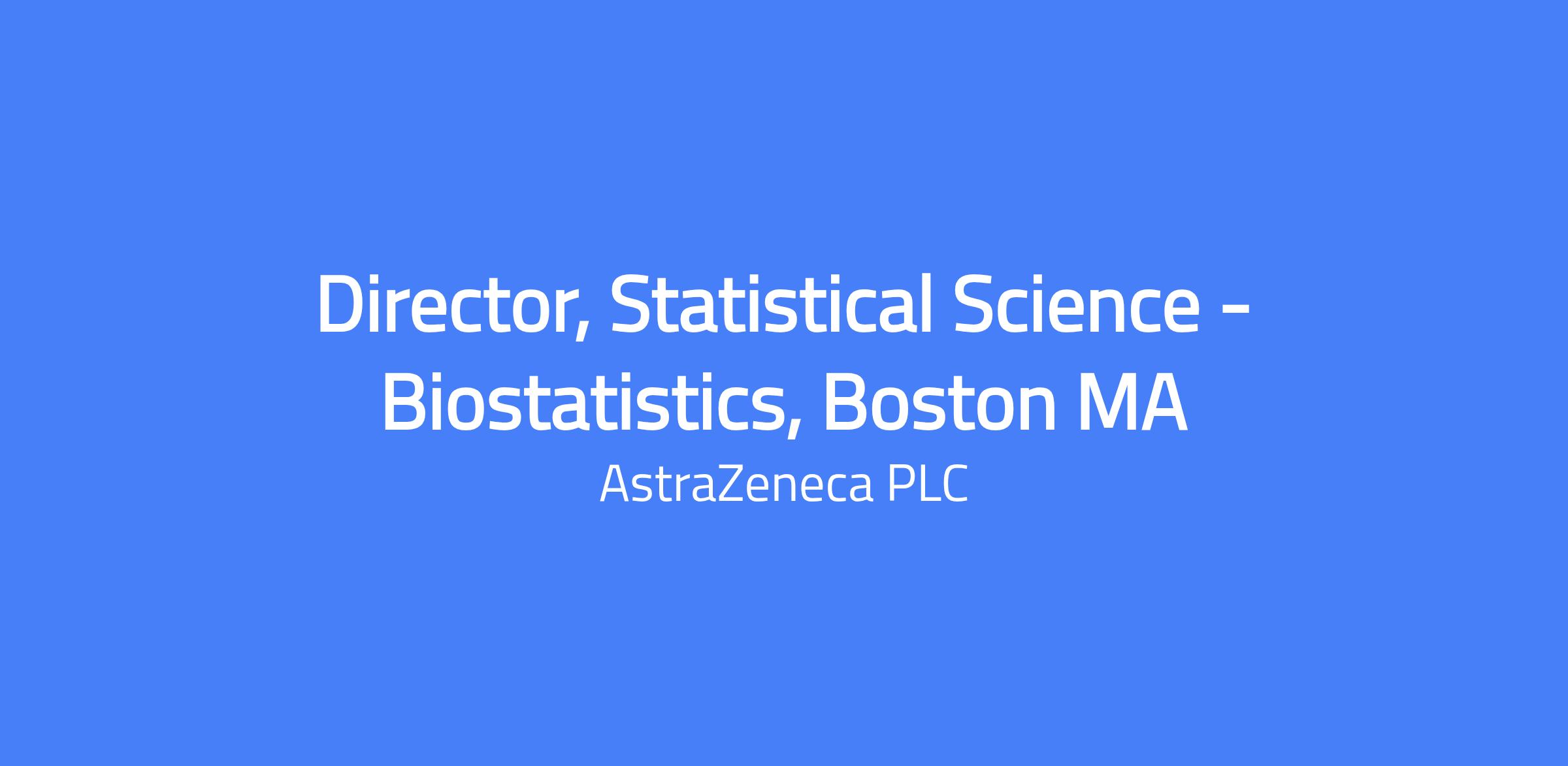 Director, Statistical Science -Biostatistics Location: Boston The Statistical Science Director has sufficient experience working as a statistician in the pharmaceutical industry to be accountable and independently lead the statistical strategy or technical activities related to design, delivery and interpretation, high level internal governance committees and/or regulatory submissions of a project. This individual is able to lead, perform and communicate results of more technical analyses, and able to guide less experienced staff. Competent individual contributor with excellent cross-functional collaboration. You Will: Lead the statistical design and strategy to product development plans, clinical studies, regulatory strategy, health technology assessment and/or commercial activities as appropriate for the stage of the product Lead the statistical content and ensure quality for study designs, documents, delivery and interpretation and submission Quantify the benefit, risk, value and uncertainty of the emerging product profile and within the team Provide global leadership to others and direct project work delivered by internal and external staff Partner with CROs to ensure delivery to quality and time Represent AZ externally which may include health authorities, advisory boards, conferences, workshops and/or payer interactions Maintain knowledge of statistical methodology in relevant areas and promote, investigate and implement novel statistical approaches Represent statistical strategy at internal decision-making governance including review boards, therapy area leadership teams and internal governance committees Mentor/coach and support the technical education and training of Statistics staff You have: MSc/PhD in Statistics, Mathematics (containing a substantial statistical component), or recognised equivalent to stats MSc 7+ yrs of experience of pharmaceutical development, data analysis and interpretation and experience of program design. Track record of background in leading independently Experience with and broad awareness of regulatory interactions and/or submission Demonstrated technical skills Desirable skills: TA or disease area knowledge expertise Exposure to business development opportunities (e.g.in licencing) Project management skills Proficiency in programming SAS and/or R and Python The annual base pay for this position ranges from $188,000 to $282,000. Our positions offer eligibility for various incentives—an opportunity to receive short-term incentive bonuses, equity-based awards for salaried roles and commissions for sales roles. Benefits offered include qualified retirement programs, paid time off (i.e., vacation, holiday, and leaves), as well as health, dental, and vision coverage in accordance with the terms of the applicable plans. Date Posted 08-Apr-2026 Closing Date 28-Apr-2026 Our mission is to build an inclusive environment where equal employment opportunities are available to all applicants and employees. In furtherance of that mission, we welcome and consider applications from all qualified candidates, regardless of their protected characteristics. If you have a disability or special need that requires accommodation, please complete the corresponding section in the application form. AstraZeneca is a global, science-led, patient-focused biopharmaceutical company. We focus on discovering, developing and commercialising prescription medicines for some of the world’s most serious diseases. But we are more than one of the world’s leading pharmaceutical companies. At AstraZeneca, we’re dedicated to being a Great Place to Work. Where you are empowered to push the boundaries of science, challenge convention and unleash your entrepreneurial spirit. To embrace differences and take bold actions to drive the change needed to meet global healthcare and sustainability challenges. There is no better place to make a difference in medicine, patients, and society. An inclusive culture where you will connect different thinking to generate new and valuable opportunities. Where you will find a commitment to lifelong learning, growth and development for all. Our Inclusion & Diversity (I&D) mission is to create an inclusive and equitable environment where people belong, using the power of our diversity to push the boundaries of science to deliver life-changing medicines to patients. Inclusion and diversity are fundamental to the success of our company, because innovation requires breakthrough ideas that only come from a diverse workforce empowered to challenge conventional thinking. We’re curious about science and the advancement of knowledge. We find creative ways to approach new challenges. We’re driven to make the right choices and be accountable for our actions. As an organisation centred around what makes us human, we put a big focus on people. Across our business, we want colleagues to wake up excited about their day at the office, in the field, or in the lab. Along with our purpose to bring life-changing medicines to people across the globe, we have a promise to you: to help you realise the full breadth of your potential. Here, you’ll do work that has the potential to change your life and improve countless others. And, together with your team, you’ll shape a culture that unites and inspires us every day. This is your life at AstraZeneca.