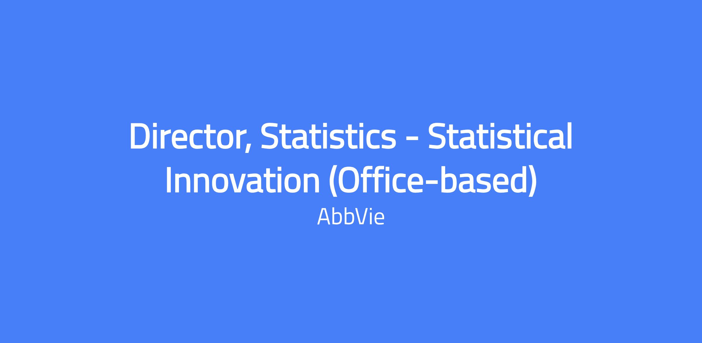 Director, Statistics - Statistical Innovation (Office-based) leads scientific and statistical direction within AbbVie's Statistical Innovation team, guiding or collaborating on clinical development and Data Statistical Sciences initiatives using advanced methodologies, predictive modeling, and machine learning. The role supports design optimization, methodological innovation, and external scientific impact, with a hybrid work schedule from North Chicago, IL, Florham Park, NJ, or Irvine, CA offices.