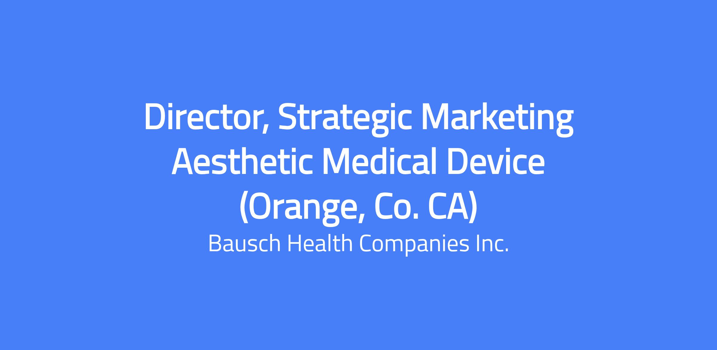 Director, Strategic Marketing Aesthetic Medical Device. This role leads defined HCP and portfolio marketing responsibilities, toolkits, campaigns, and enablement programs to commercialize products in development and maintain strong brand equity. The role collaborates with GSM Product Management, GSM Professional Affairs and Education, Regional Marketing, and Product Development to conduct market analysis, define value propositions, and align with internal and external partners. Location: Irvine, California; remote position; no relocation.