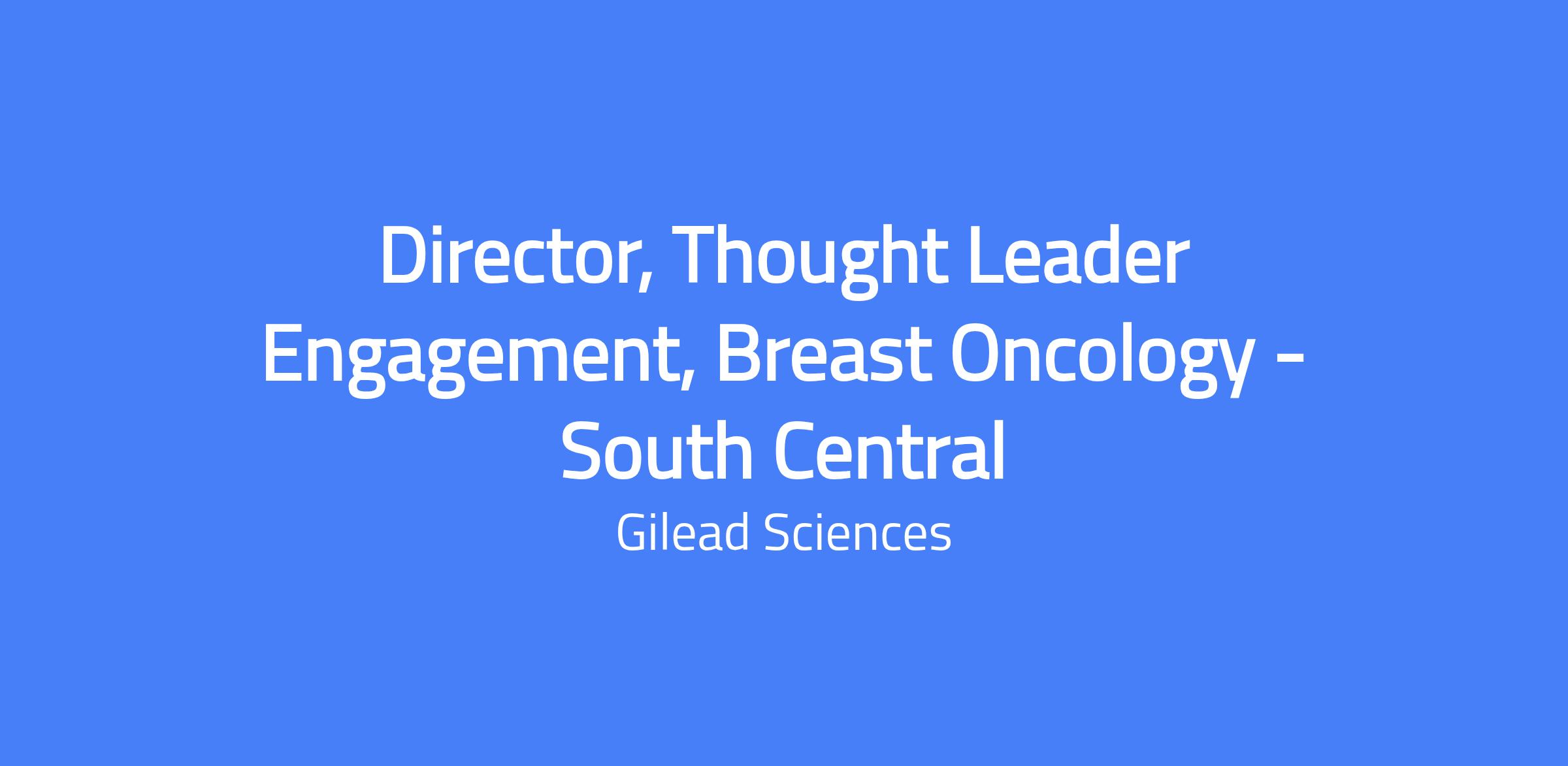 The Director, Thought Leader Engagement (TLE) South Central role is part of the marketing organization at Gilead Oncology. This role engages with thought leaders in both academic and community oncology settings. The TLE Lead is critical for insight generation aligned with brand needs, sentiment tracking and shaping based on strategic pillars, and strategic partnership with field teams to develop market analyses and build brand advocacy.