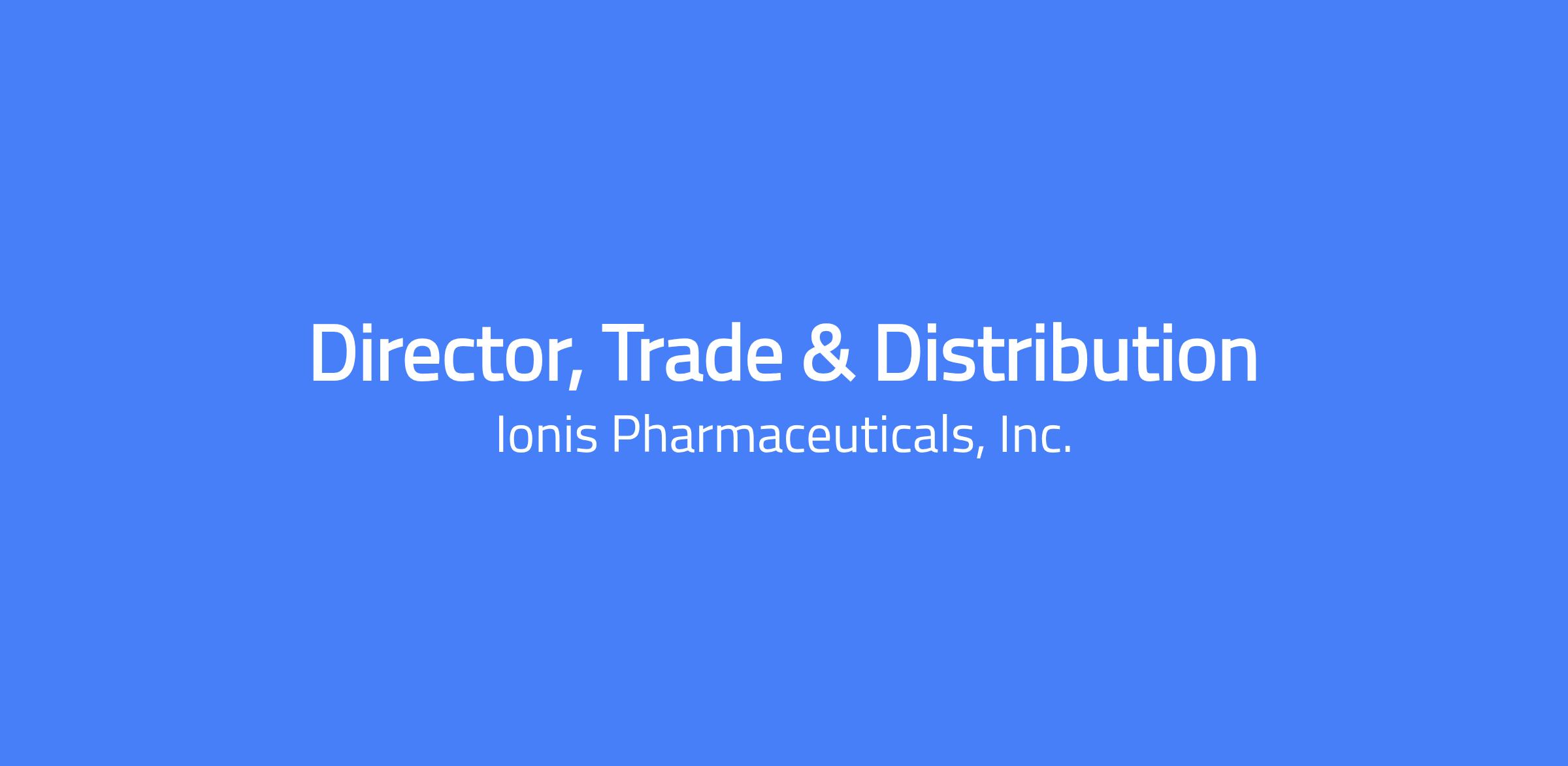 The Director, Trade & Distribution defines and leads Ionis’ U.S. Trade & Distribution strategy to enable scalable, compliant solutions that expand patient access and operational excellence across Ionis’ portfolio. This leader serves as the strategic architect of Ionis’ distribution network, driving long-term partnerships, data connectivity, and enterprise alignment to support Ionis’ evolution into a fully integrated biotechnology company. This position will report to the Executive Director, Trade & Distribution and may be located at Ionis’ corporate headquarters in Carlsbad, California, its Boston office, or remote.