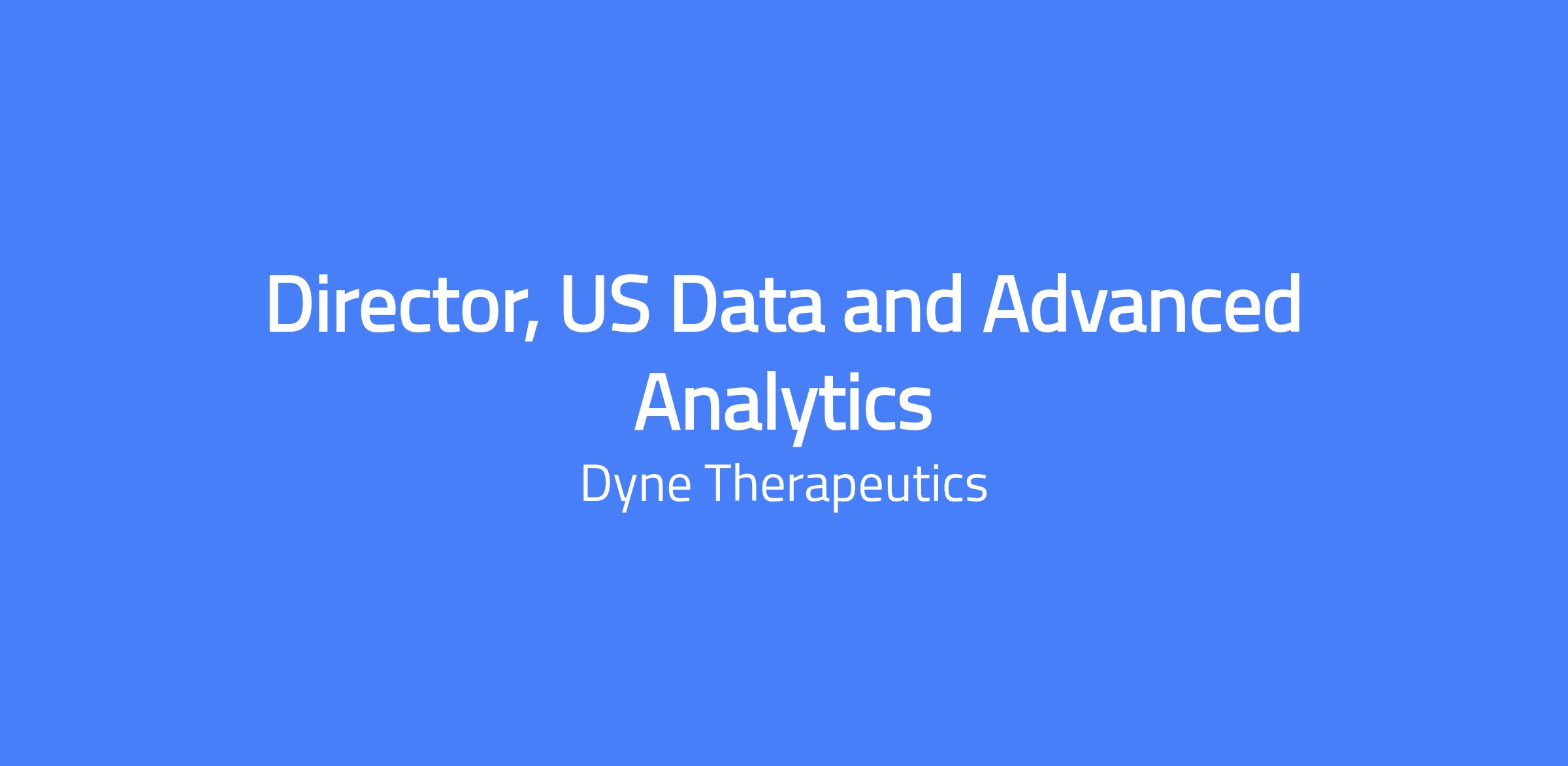 The Director, US Data and Advanced Analytics plays an instrumental role in building and synthesizing a data ecosystem to answer key business questions by generating recommendations that optimize Dyne’s readiness for neuromuscular rare disease launches. Reporting to the Head of US Commercial Operations, this individual is a highly visible commercial leader who tests, evaluates, and introduces advanced analytical techniques; leverages sophisticated analytical methodologies; and incorporates predictive analytics to inform decision‑making related to brand and channel strategies, patient journeys, promotional response, ROI measurement, demand forecasting, and omnichannel analytics. This role requires strong cross‑functional collaboration across commercial stakeholders in marketing, market access, patient services, finance, IT, and US Commercial leadership. The Director demonstrates advanced knowledge and proficiency in using large and complex data sets to drive innovative thinking that results in value creation.