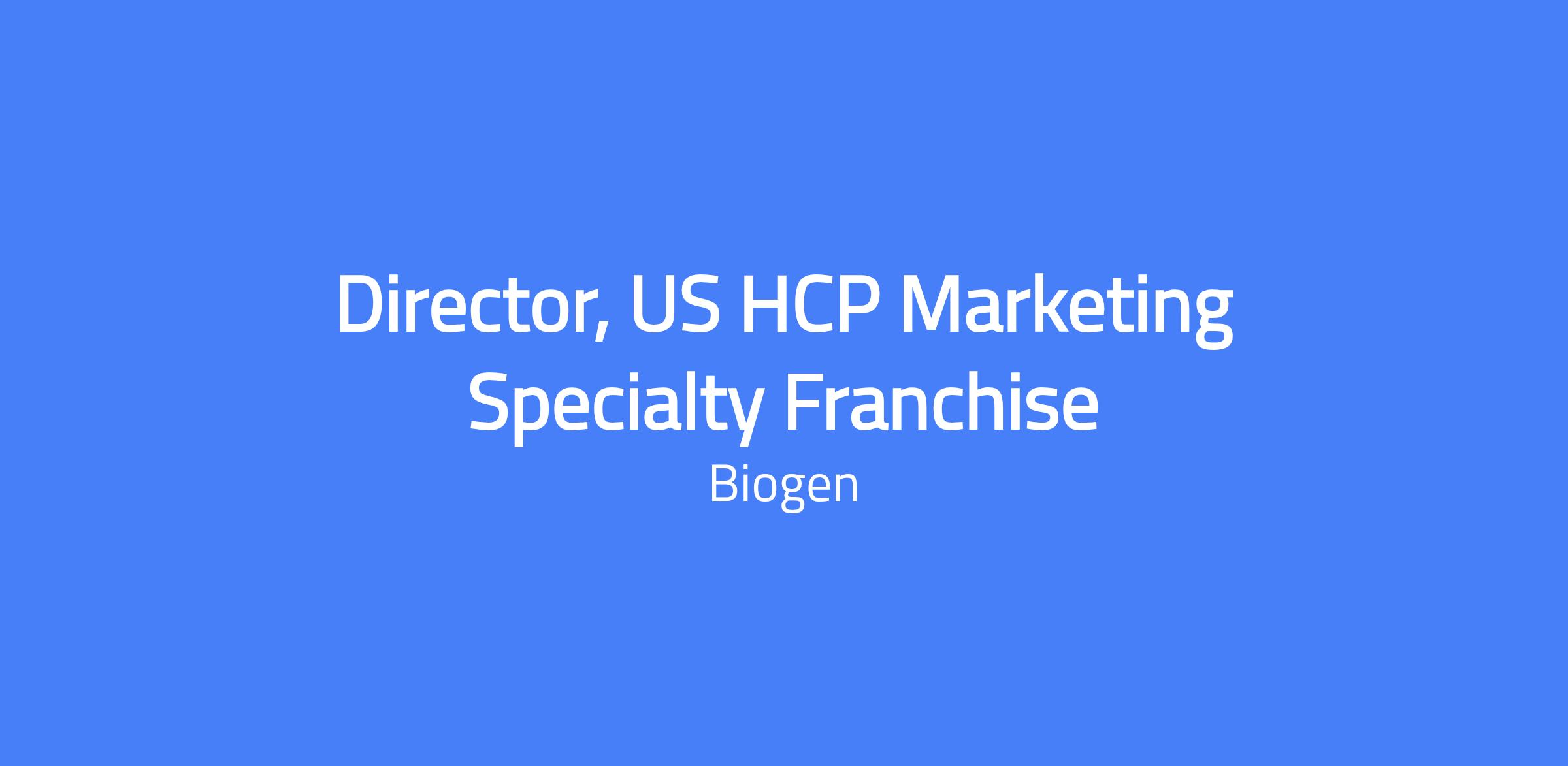 Director, US HCP Marketing Specialty Franchise. Biogen’s Marketing teams are on the front lines every day, ensuring that our products have the right visibility for the patients who need them most. We manage global brands, support Biogen’s existing portfolio of therapies and help prepare new drug approvals for launch. We work from a deep understanding of the science behind our therapies and the disease areas that they treat. You will play a critical role within the U.S. HCP Marketing team, serving in a key leadership position with high visibility, and owning the development and execution of brand strategies and plans. Reporting to the Sr. Director of US HCP Marketing, you will innovate and evolve Biogen’s industry-leading portfolio, improving patient outcomes for millions.