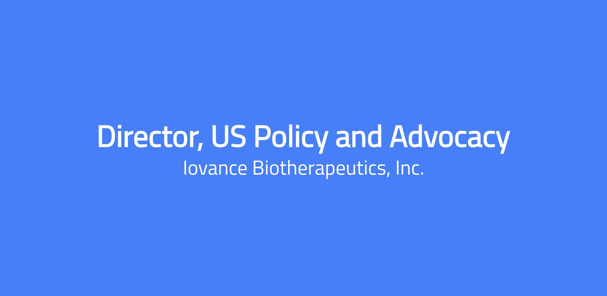 The Director, US Policy and Advocacy provides analysis and direction to drive strategy development, policy development, trade association engagement, coalition building, and strategy execution. They lead the development of comprehensive advocacy strategies to shape the public policy environment for Iovance’s existing and pipeline cell therapies. The role requires extensive US healthcare reimbursement policy experience, strong critical thinking, and a solution-oriented mindset; ideally, experience with cell or gene therapy. The position reports to the Head of Policy, Pricing and Distribution.