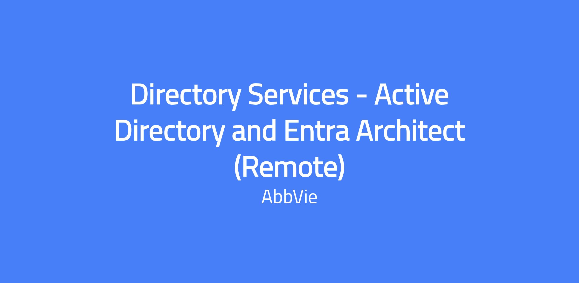 This is a hands-on, architecture-focused Directory Services Lead role within AbbVie’s Information Security & Risk Management (ISRM) and Identity & Access Management (IAM) teams. You will drive the design and implementation of enterprise authentication and directory services across on-premises and cloud environments, with a focus on Active Directory, Microsoft Entra ID, hybrid identity, and PKI. You will ensure modernization, security, and resilience of identity platforms while guiding partner teams. This role is remote anywhere in the United States.