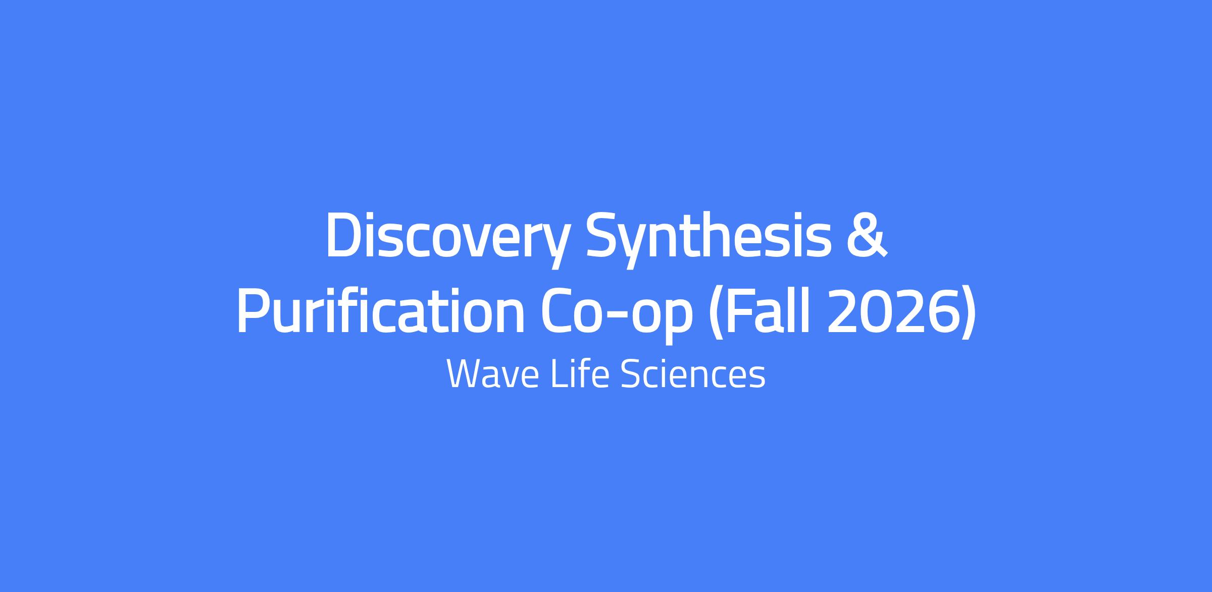 Discovery Synthesis & Purification Co-op (Fall 2026) at Wave Life Sciences. The co-op will join a team of scientists in Lexington, MA, gaining exposure to oligonucleotide synthesis, formulation, purification, and analysis. The position includes training in a variety of laboratory techniques and instrumentation, and is ideal for a student with strong organizational skills and attention to detail who thrives in a team-oriented, fast-paced, multidisciplinary biotech environment. Completion of coursework in organic chemistry, biochemistry, or analytical chemistry with laboratory experience is preferred.