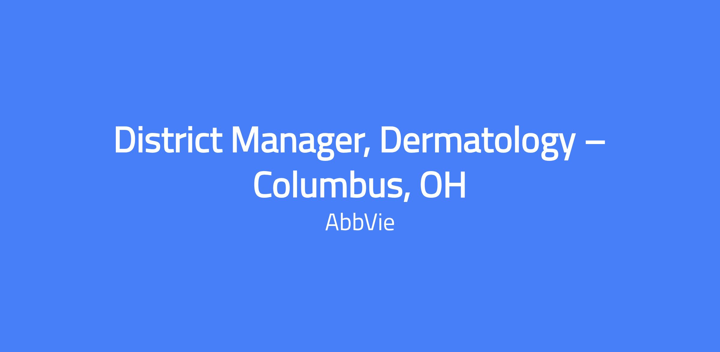 District Manager, Dermatology – Columbus, OH