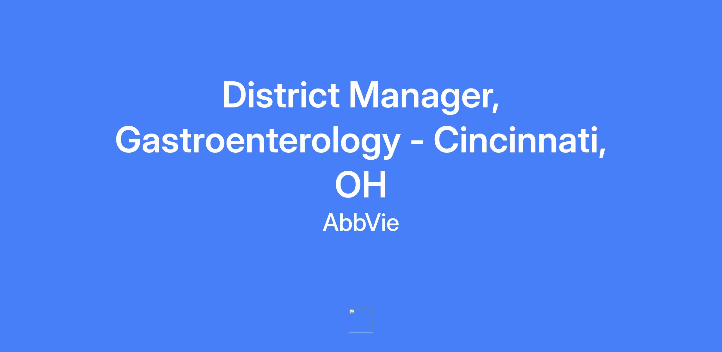District Manager, Gastroenterology - Cincinnati, OH. Field-based role coordinating commercial activity within in-field teams to achieve sales targets across Cincinnati, OH; Lexington, KY; Charlestown, WV. Create, implement, and monitor the District Sales Plan to drive top- and bottom-line results.