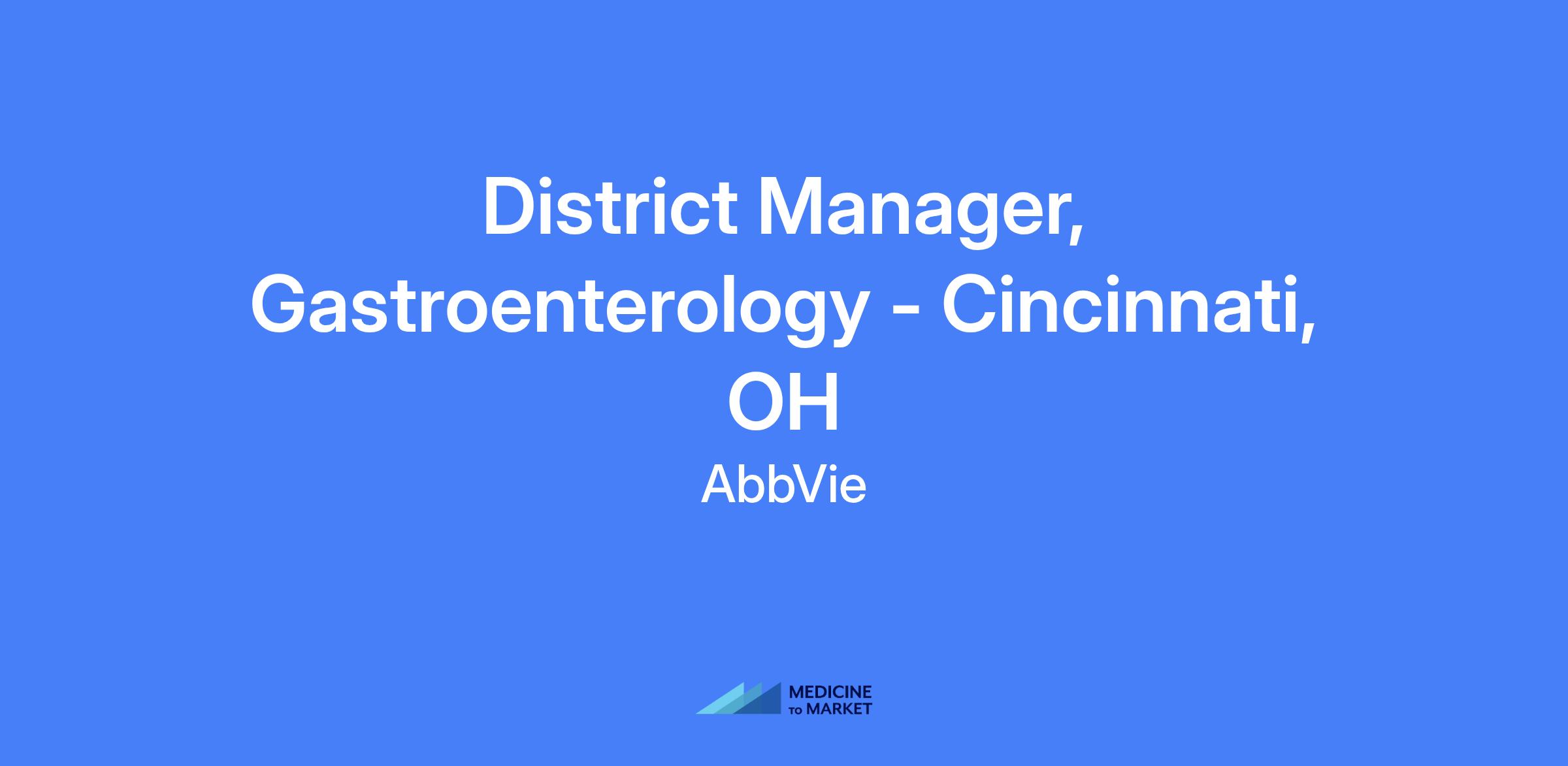 District Manager, Gastroenterology - Cincinnati, OH. Field-based role coordinating commercial activity within in-field teams to achieve sales targets across Cincinnati, OH; Lexington, KY; Charlestown, WV. Create, implement, and monitor the District Sales Plan to drive top- and bottom-line results.