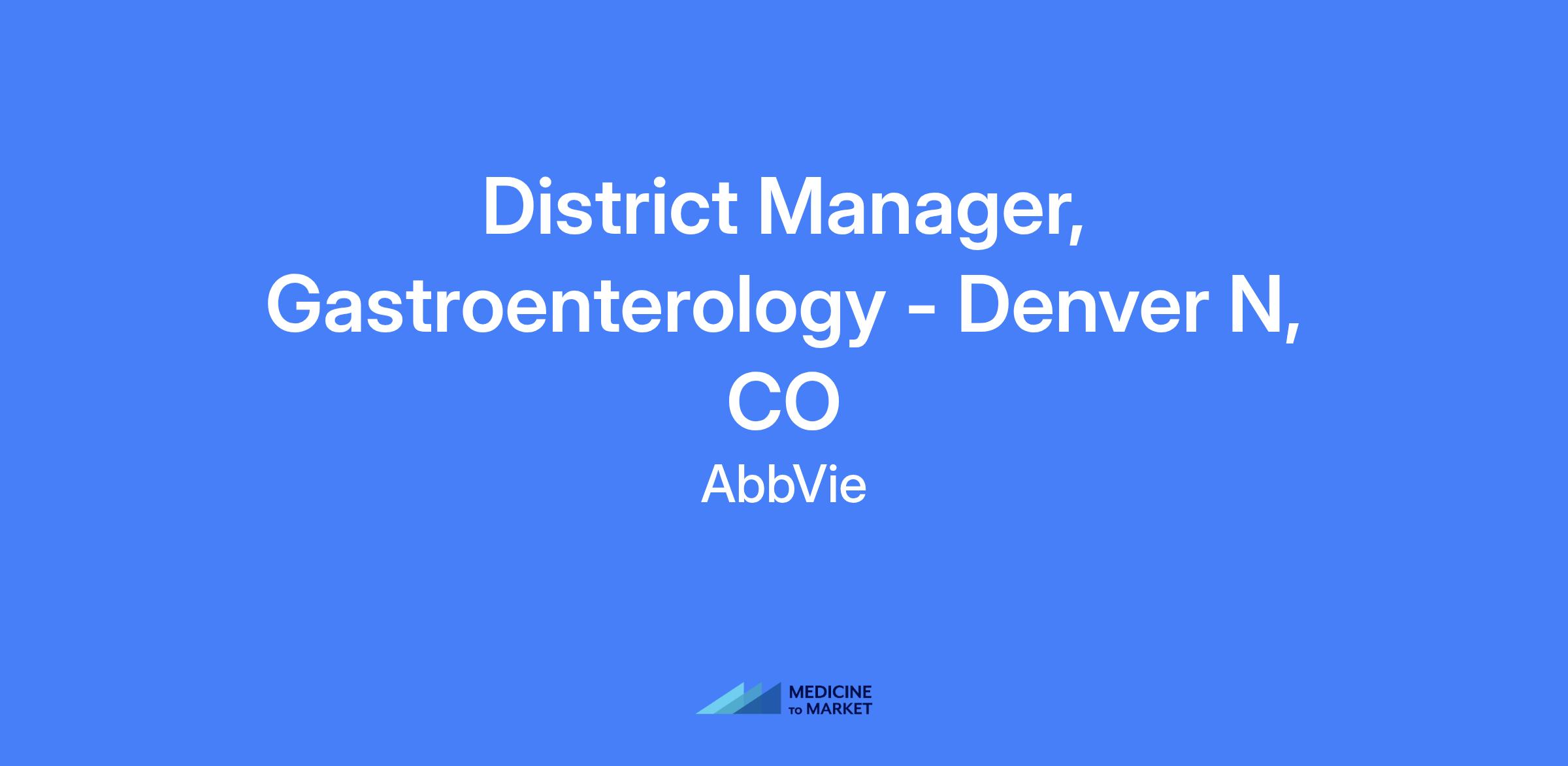 District Manager, Gastroenterology - Denver N, CO. Field-based role coordinating in-field activity to achieve sales targets within an assigned geography. Develops, implements, and communicates the District Sales Plan and monitors progress.