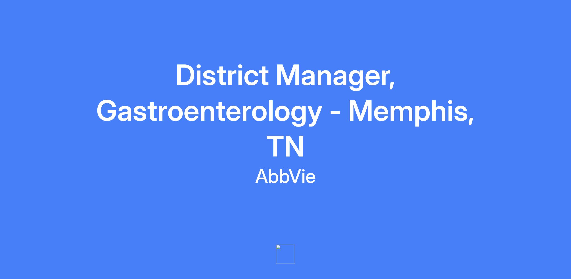 District Manager, Gastroenterology - Memphis, TN. Field-based leadership coordinating in-field activity to drive sales within an assigned geography, creating and implementing the District Sales Plan and monitoring progress.