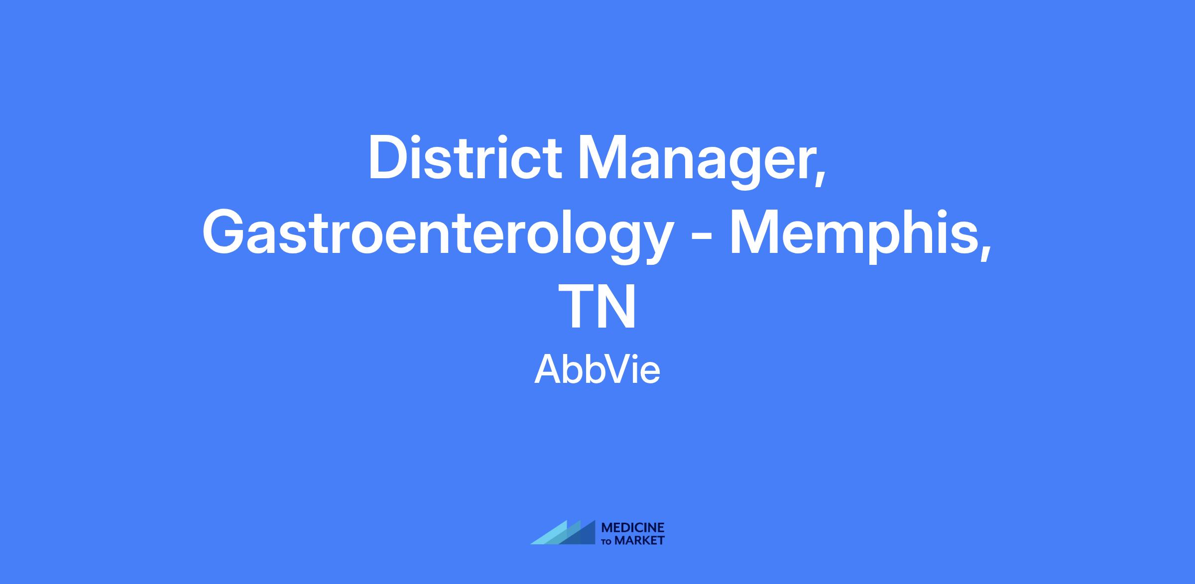 District Manager, Gastroenterology - Memphis, TN. Field-based leadership coordinating in-field activity to drive sales within an assigned geography, creating and implementing the District Sales Plan and monitoring progress.