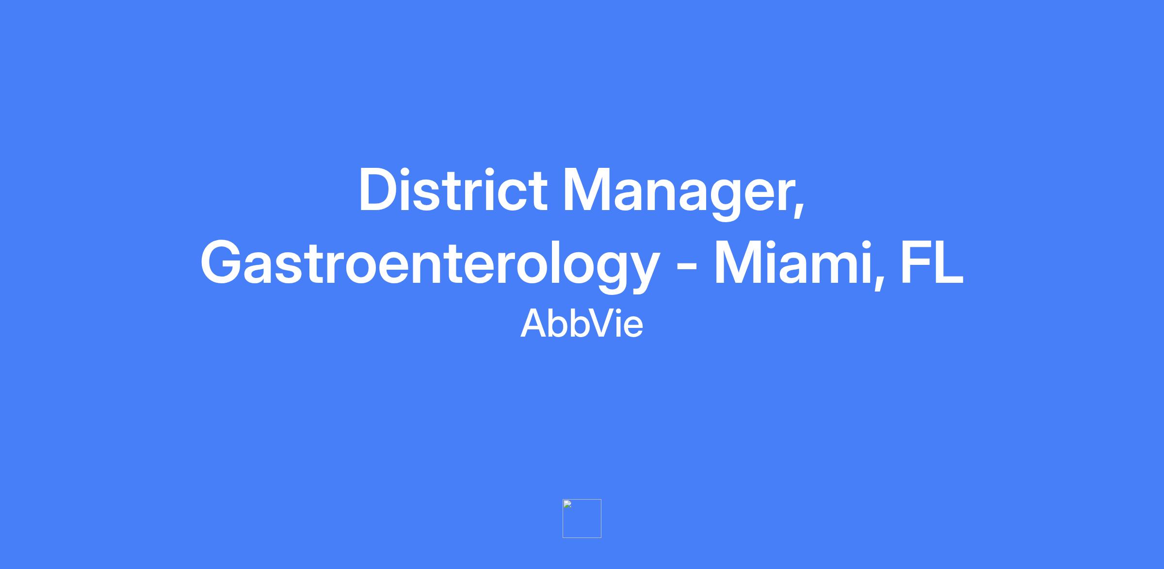 District Manager, Gastroenterology – Miami, FL. Field-based role overseeing in-field teams within a defined geography to achieve sales targets by creating, implementing, and monitoring the District Sales Plan. Requires living within a reasonable distance of the primary city and geographic coverage including Miami, South Orlando, and Ft. Lauderdale.
