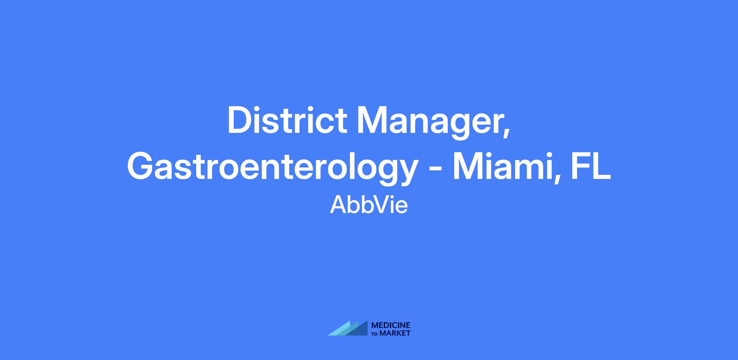 District Manager, Gastroenterology - Miami, FL. Field-based leadership role overseeing in-field teams to drive sales within an assigned geography.