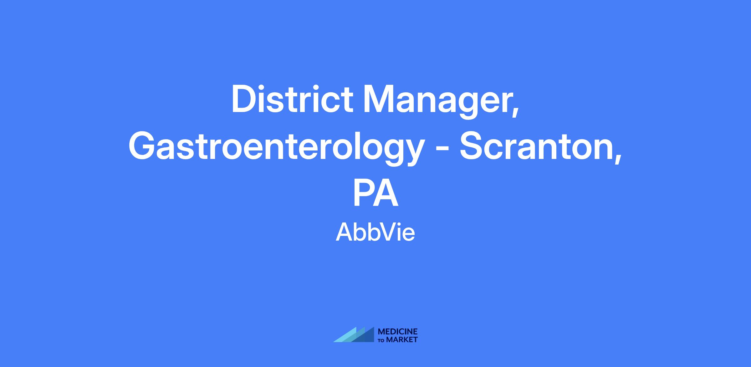 District Manager, Gastroenterology - Scranton, PA. Field-based leadership role responsible for coordinating in-field activities within an assigned geography to achieve sales targets and implement the District Sales Plan.