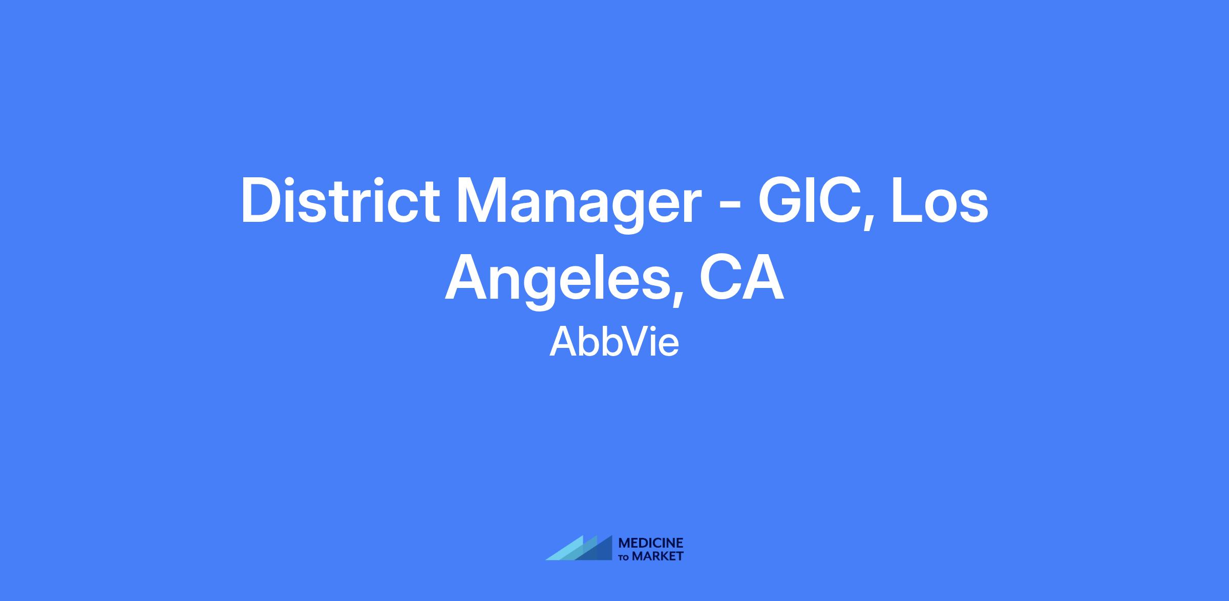 District Manager โรรฌ GIC, Los Angeles, CA. Coordinate commercial activity within in-field teams to ensure targets are reached for increasing sales within an assigned geography. Create, implement, and communicate District Sales Plan and monitor progress.