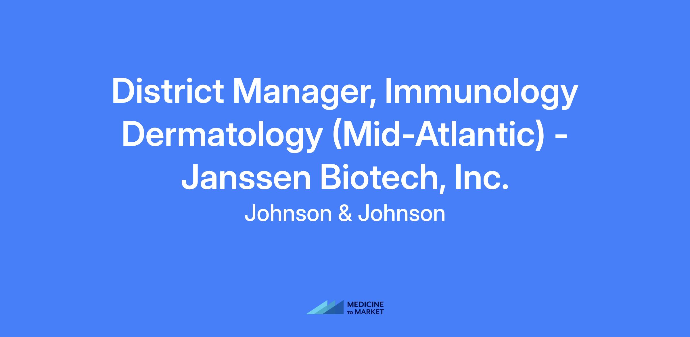 District Manager, Immunology Dermatology (Mid-Atlantic) at Janssen Biotech, Inc. – responsible for leading the Immunology Dermatology district across the Mid-Atlantic region, shaping business strategy, developing teams, and achieving sales objectives withinDermatology products.