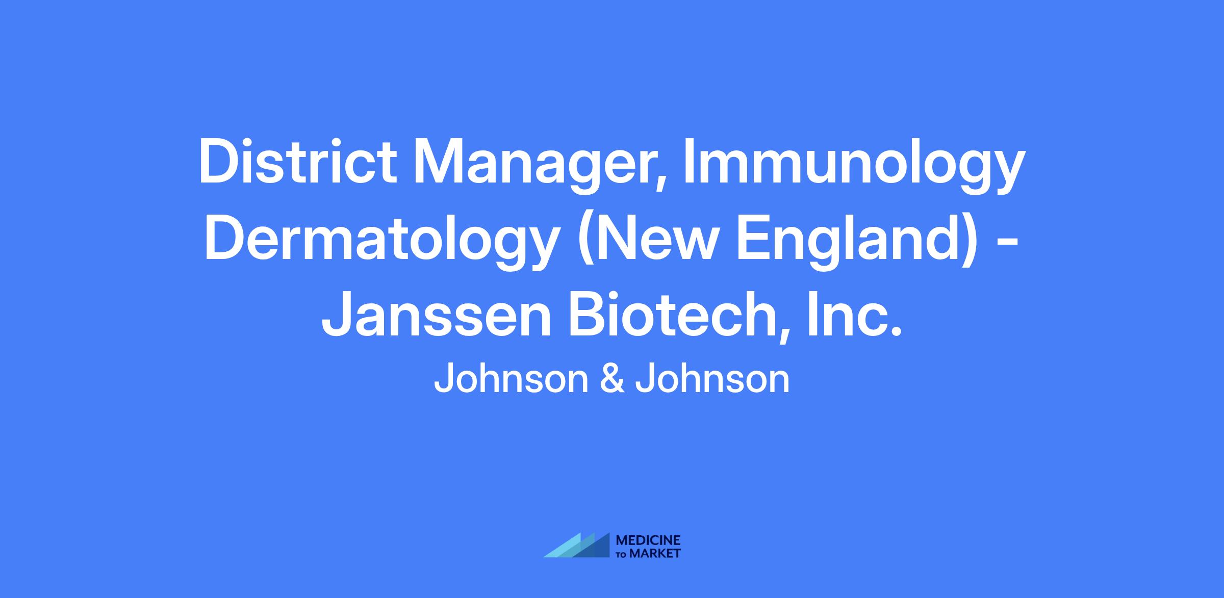 District Manager, Immunology Dermatology (New England) – Janssen Biotech, Inc. leads a team to achieve sales objectives for Dermatology products within the New England district, and to develop and motivate teams while maintaining customer relationships and expert product knowledge.