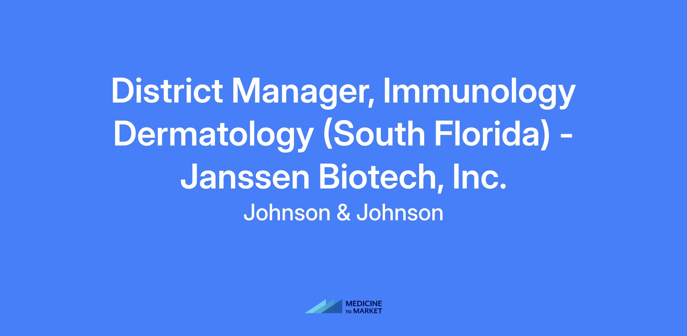 District Manager, Immunology Dermatology, supporting the South Florida district (Miami, Ft Lauderdale, Miami Beach, Naples, Hialeah, Fort Myers, Homestead, Cape Coral, Lehigh Acres, Hollywood).