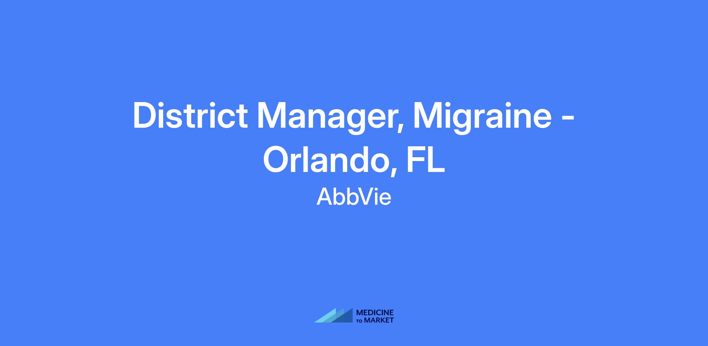 District Manager, Migraine - Orlando, FL. Coordinate commercial activity within in-field teams to ensure targets are reached for increasing sales within an assigned geography. Create, implement, and communicate District Sales Plan and monitor progress.