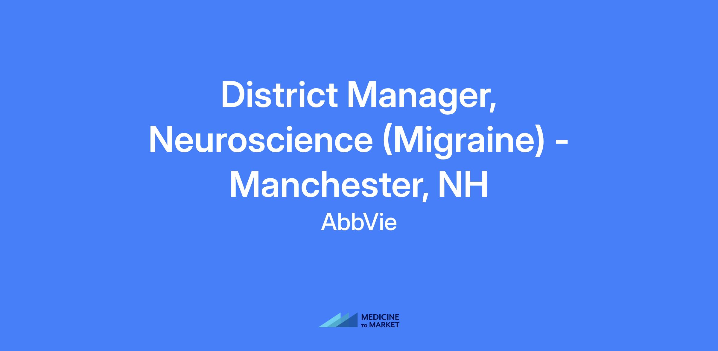 District Manager, Neuroscience (Migraine) - Manchester, NH. This is a field-based position covering New Hampshire, Maine, Vermont, and part of Massachusetts. Coordinate commercial activity within in-field teams to ensure targets are reached for increasing sales within an assigned geography. Create, implement, and communicate District Sales Plan and monitor progress.