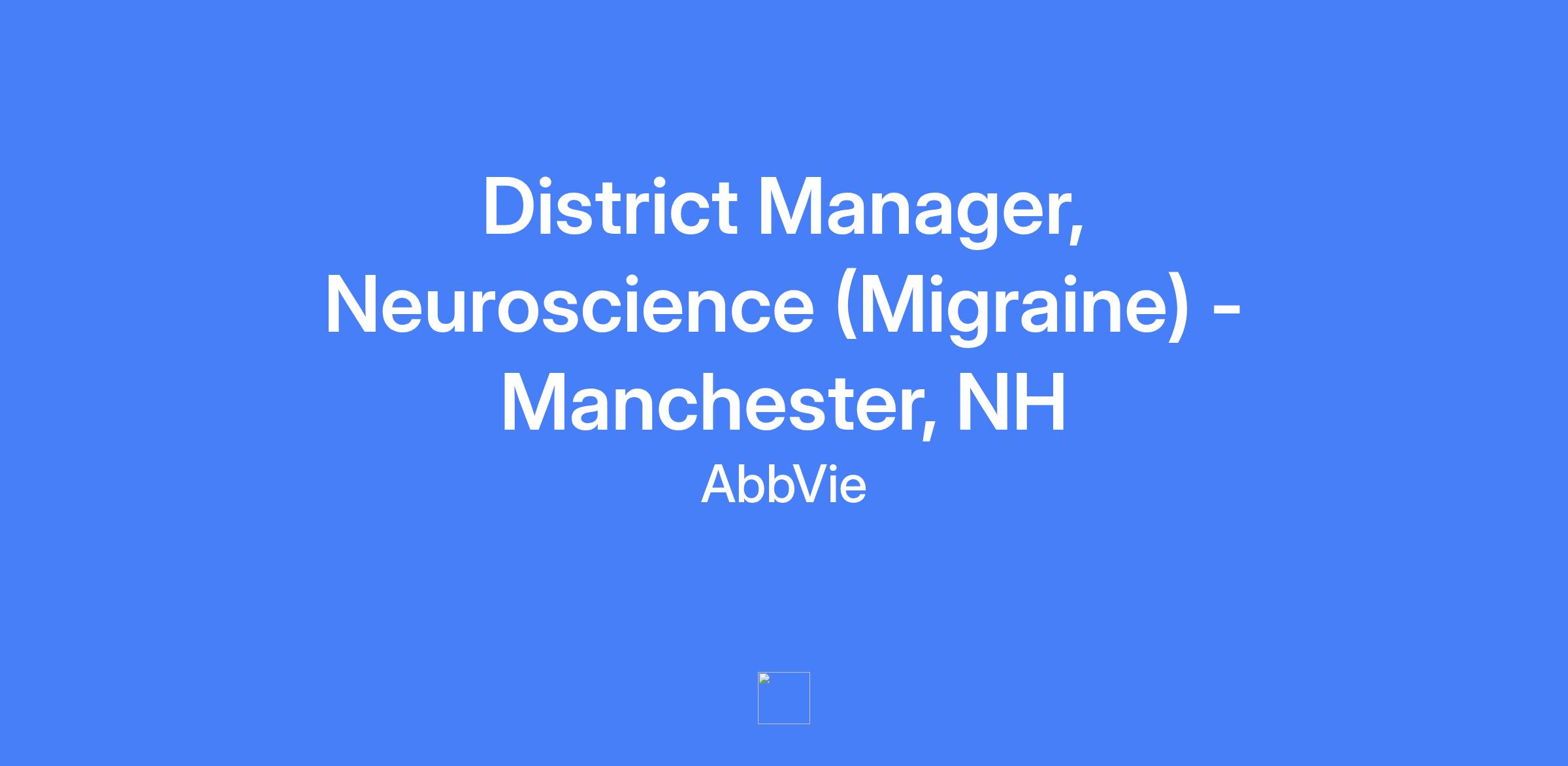 District Manager, Neuroscience (Migraine) - Manchester, NH. This is a field-based position covering New Hampshire, Maine, Vermont, and part of Massachusetts. Coordinate commercial activity within in-field teams to ensure targets are reached for increasing sales within an assigned geography. Create, implement, and communicate District Sales Plan and monitor progress.
